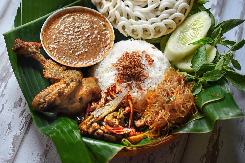 Nasi Uduk is a rice dish cooked with coconut milk and spices such as lemongrass, pandan leaves and cinnamon. Nasi Uduk is usually served with various side dishes such as fried chicken, omelet, fried tempeh and sambal kacang. Its savory taste and fragrant aroma make Nasi Uduk a delicious and filling breakfast option. This dish can be found at food stalls, street vendors, or morning markets throughout Indonesia.