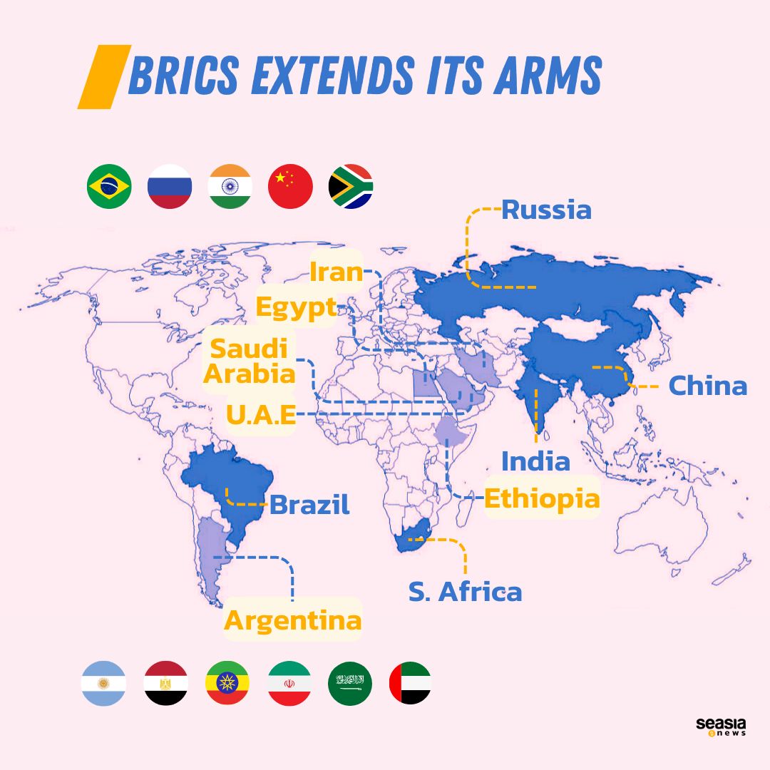 The existing five-member BRICS consortium revealed plans for expansion, extending invitations to six additional countries.