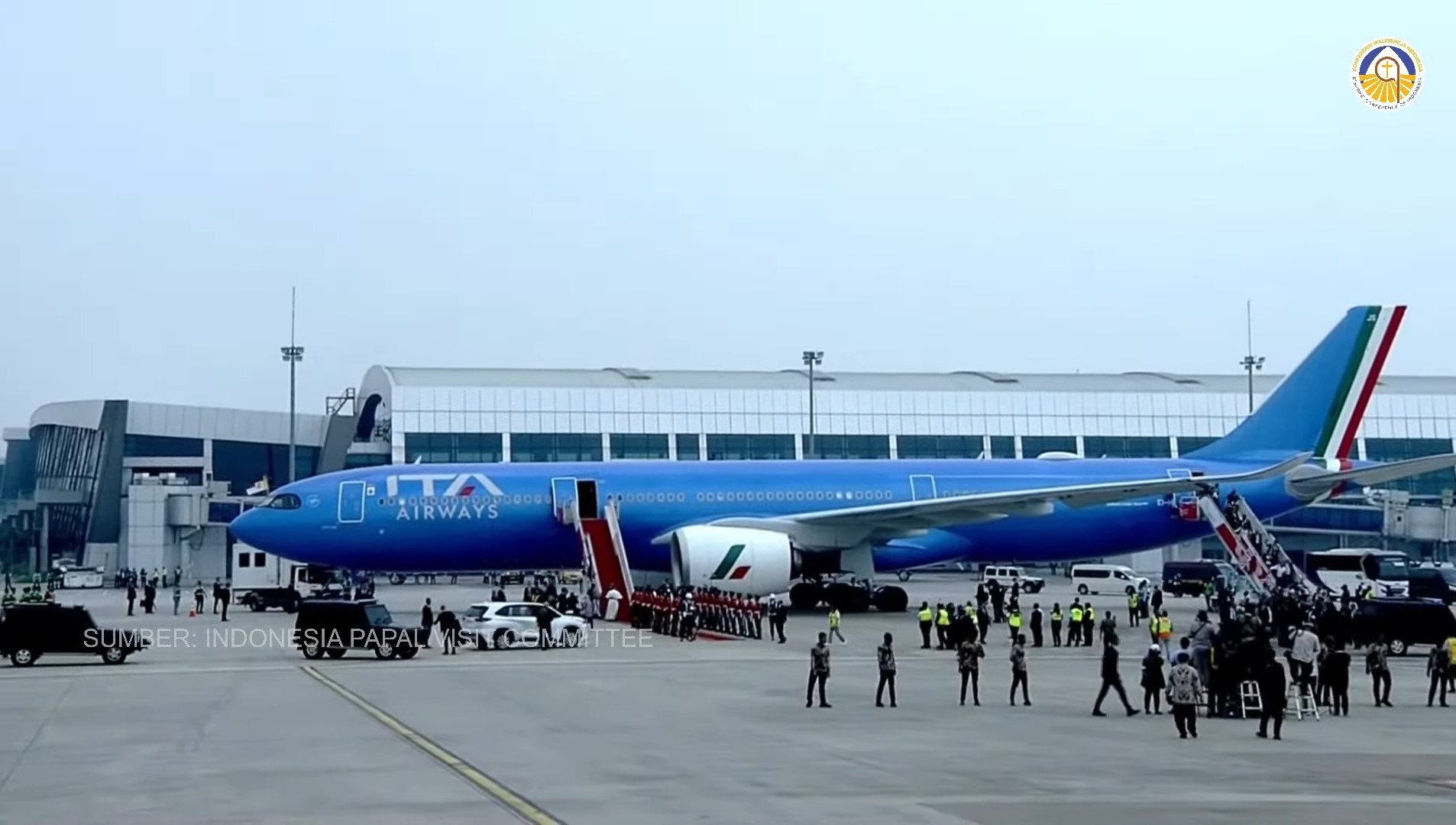 Today, on Tuesday, September 3, 2024, His Holiness Pope Francis set foot in Indonesia for the first time. The Pope and his entourage landed at Soekarno-Hatta International Airport, Tangerang, Banten, at 11:16 AM Western Indonesian Time, aboard ITA Airways A330-941, flight number AZ4000.