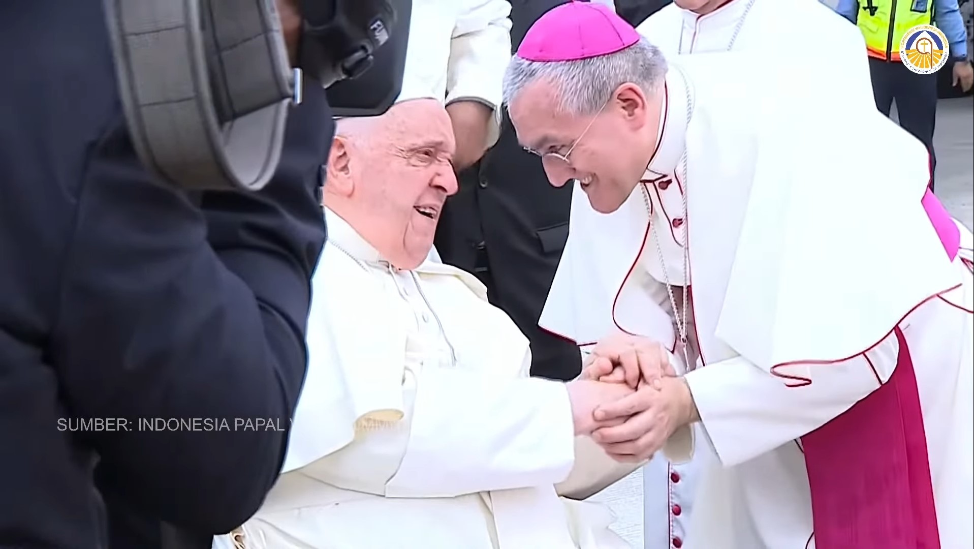 Also present were Jakarta Archbishop Cardinal Ignatius Suharyo, Apostolic Nuncio to Indonesia Archbishop Piero Pioppo, Chairman of the Indonesian Bishops' Conference (KWI) Bishop Antonius Subianto Bunjamin, Apostolic Nunciature Secretary Archbishop Michael Andrew Pawlowicz, and the General Coordinator for the Pope's Reception, Ignatius Jonan.