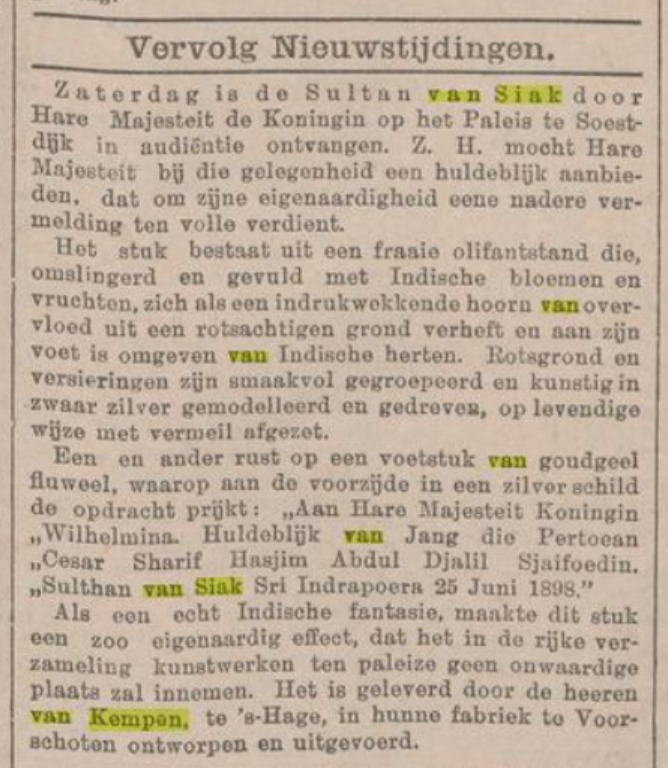 It wasn’t only the gift that astonished the Dutch public. The presence of the Sultan of Siak himself at the audience drew immense attention.