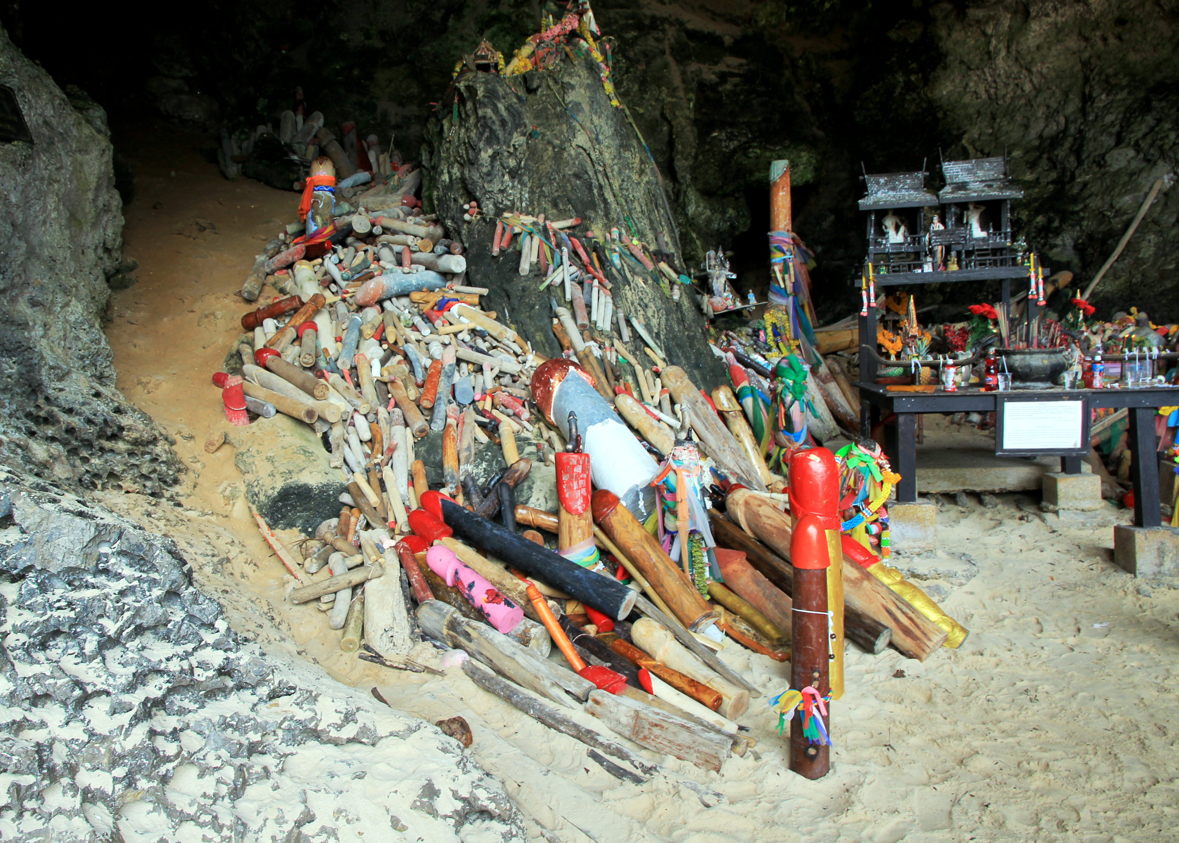 Not only a magical view, the trip is completed with the existence of a sacred shrine, placed inside the cave of the beach. This shrine is filled with offerings, shaped in wooden phallic symbols called “lingams” symbolizing the prayer for fertility, luck, and safe travel.