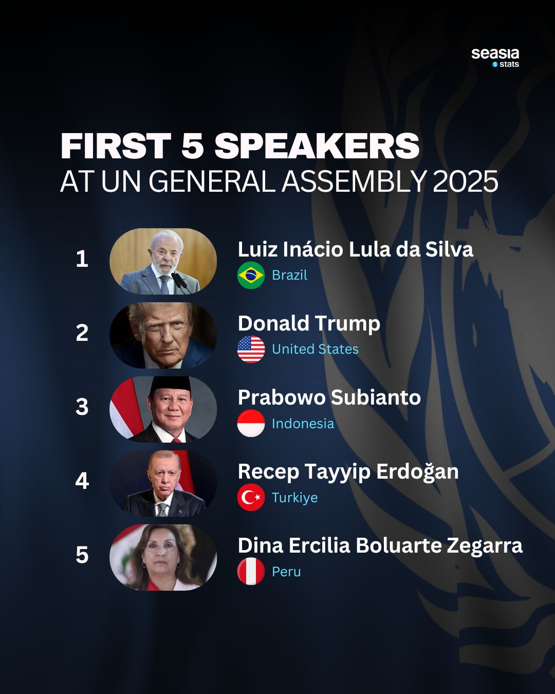 The tradition continues at the 2025 UNGA, where Brazil once again opens the session. The order of the first five speakers reflects both historical custom and diplomatic prominence: