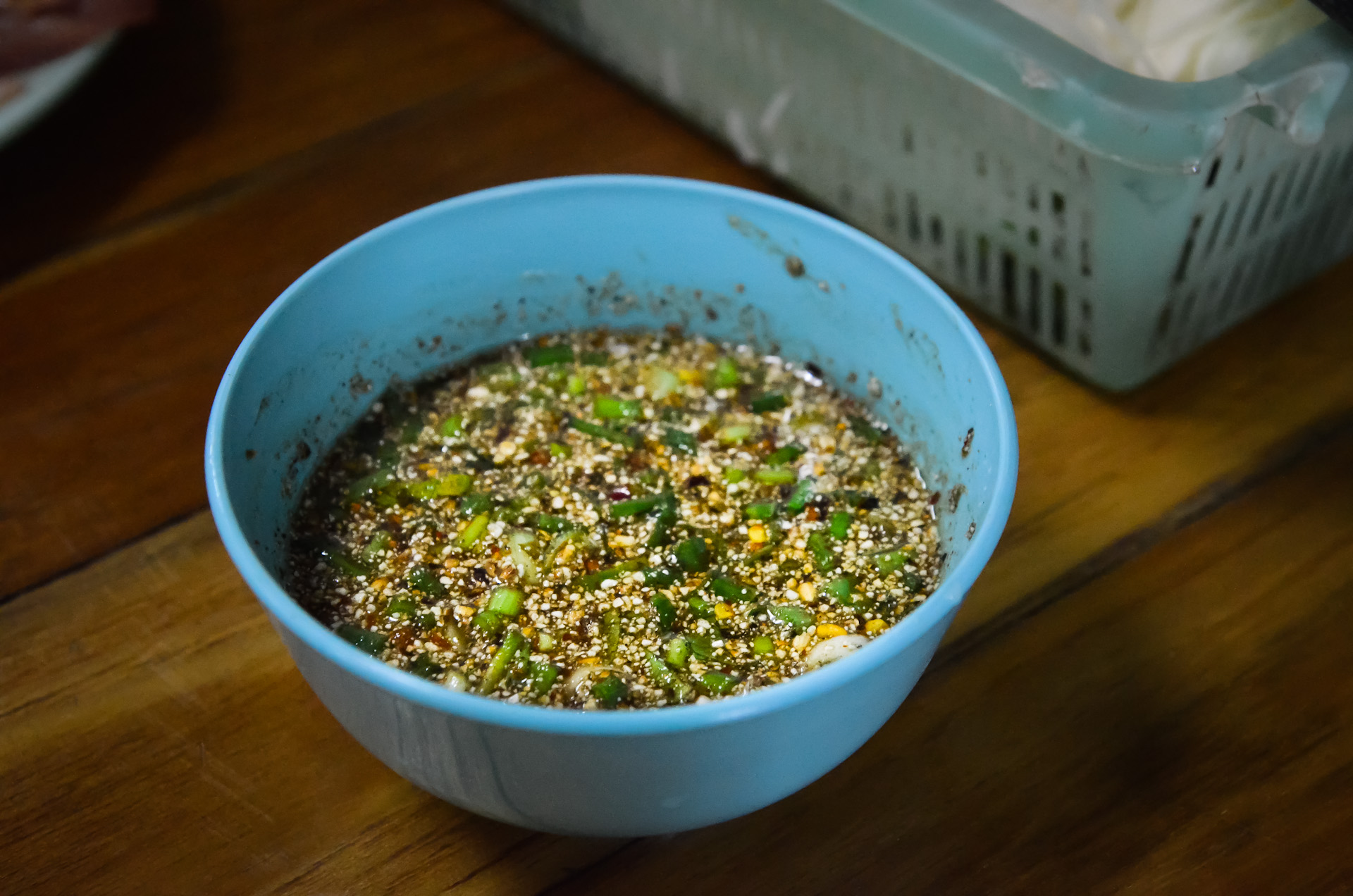 Nam chim chaeo, also written as nam jim jaew in another version, is a popular dipping sauce used in many dishes in Thailand. The word nam chim literally means “dipping sauce” in Thai, while chaeo here refers to the smoky flavor from the chili sauce.