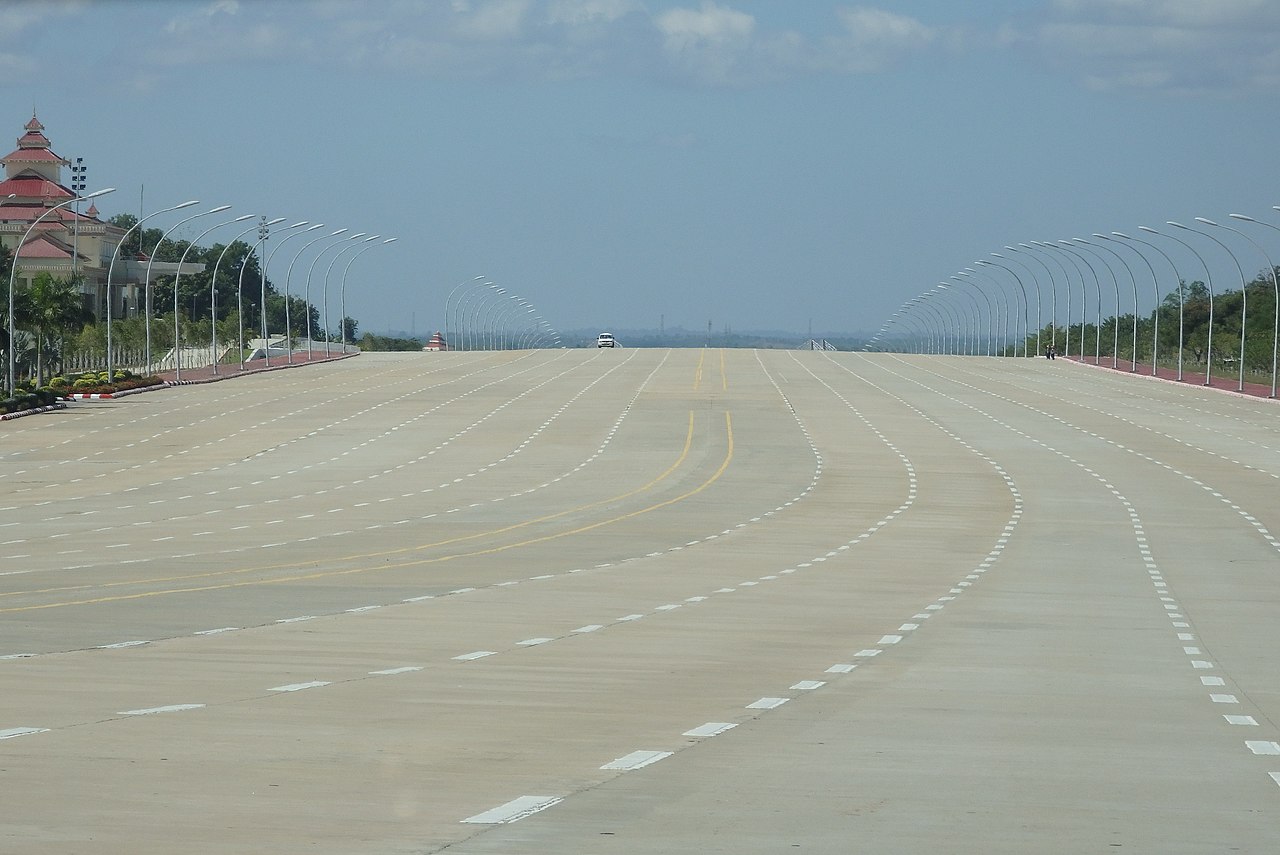Naypyidaw’s infrastructure reflects vast ambition: highways up to 20 lanes wide, enormous roundabouts, a sprawling and heavily guarded parliamentary complex, and rigidly separated urban zones.