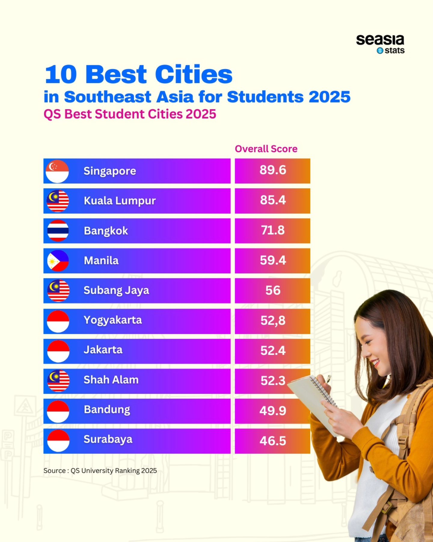 Bangkok and Manila also feature prominently in the rankings, showcasing their emerging roles as educational centers. Bangkok is home to some of Thailand’s top institutions, such as Chulalongkorn University, and offers a lively student experience.