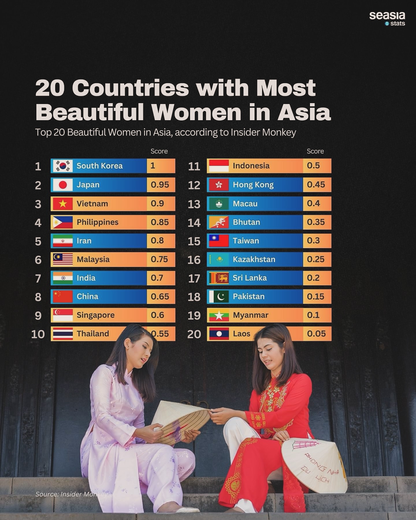 Insider Monkey’s methodology for the rankings was based on a consensus of beauty across various sources, with scores assigned to each country. The country with the highest ranking, South Korea, was given a score of 1, while the following countries received proportionately lower scores. This system allowed for a comparative view of beauty across Asia, taking into account both physical appearance and cultural standards.