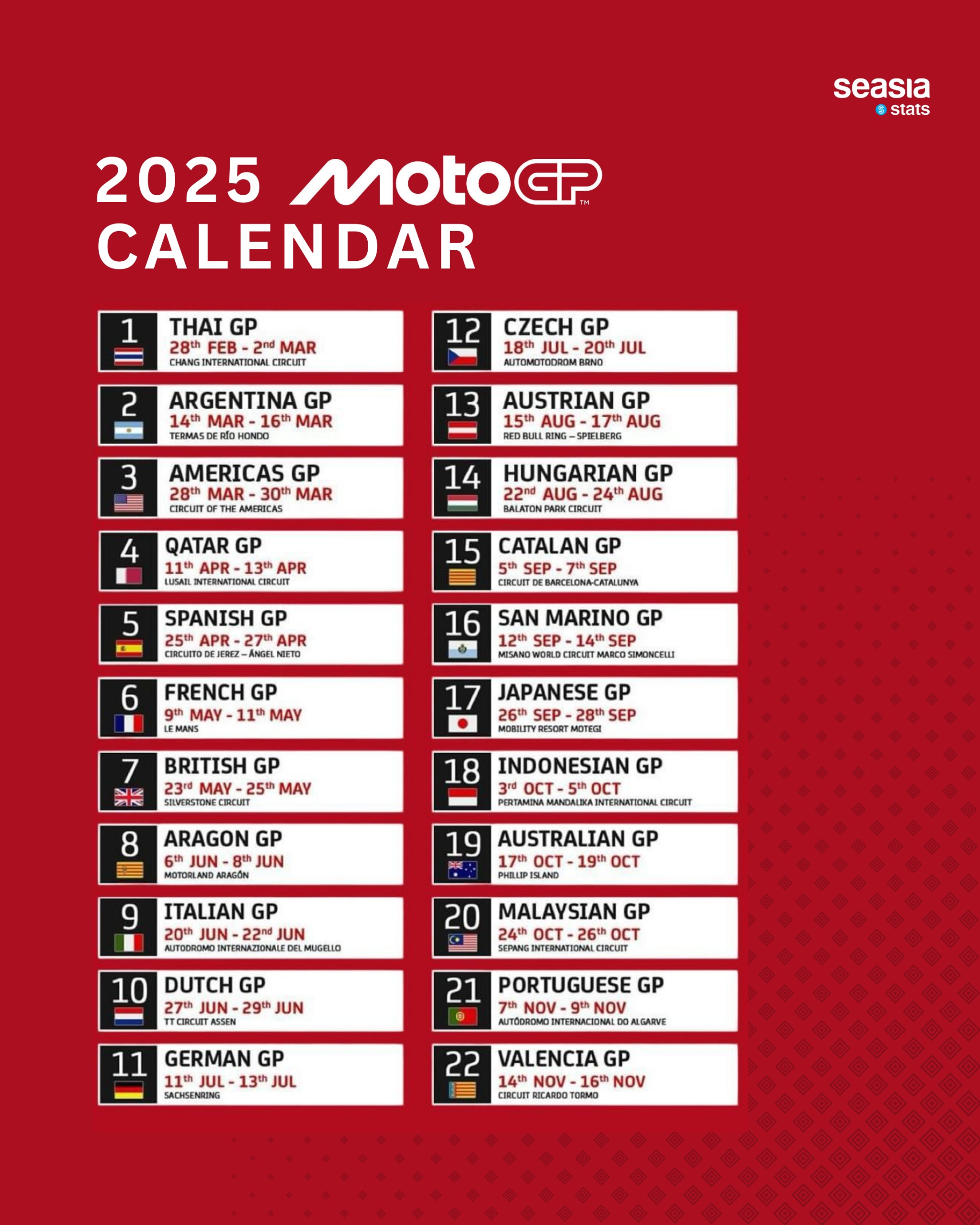 With a calendar featuring 22 races across Asia, the Americas, Europe, and Australia, the 2025 MotoGP season is set to be one of the most exciting in recent history. Fans can look forward to intense battles, high-speed action, and historic moments throughout the year.