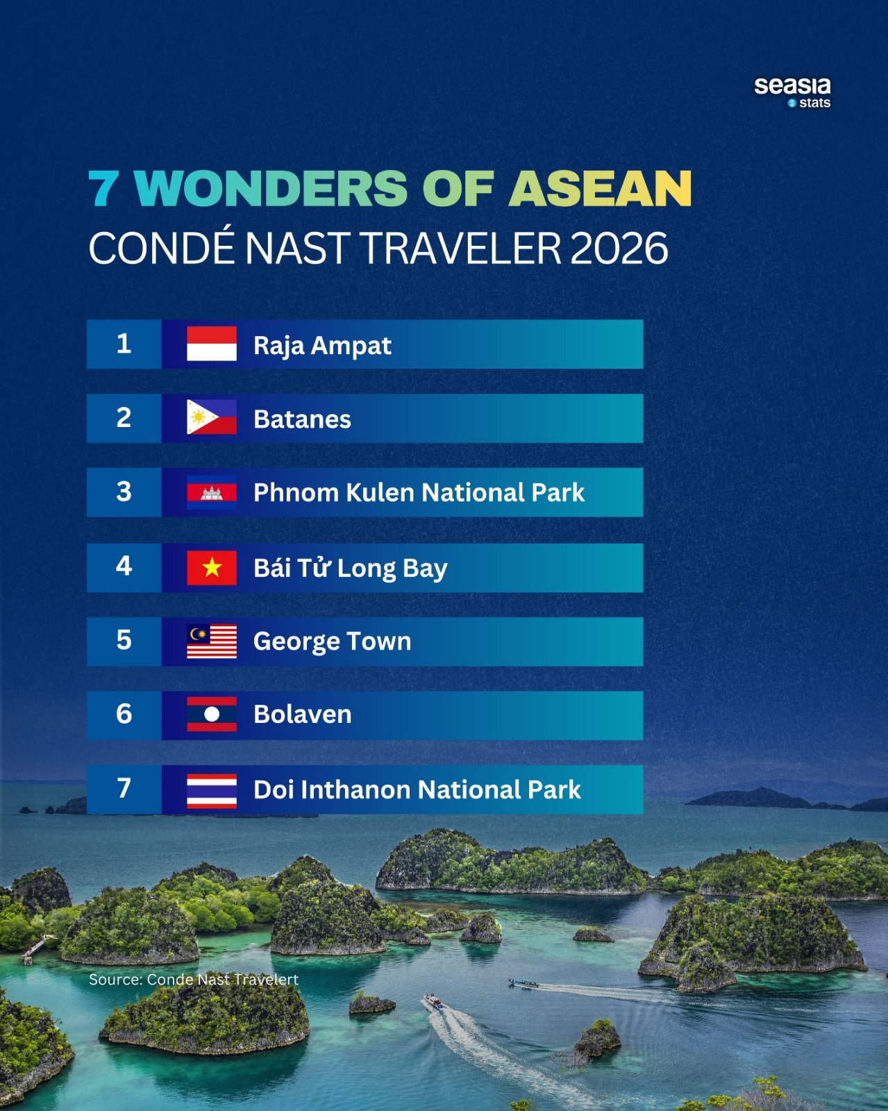 Southeast Asia has never lacked postcard beauty. What is changing now is where travelers are looking. The new mood in travel is moving away from overcrowded icons and toward places that still feel textured, intimate, and alive. That is what makes Condé Nast Traveler’s 2026 selection of the “7 Wonders of Southeast Asia” so interesting: it is not just a list of beautiful destinations, but a portrait of a region whose greatest treasures often lie just beyond the obvious.