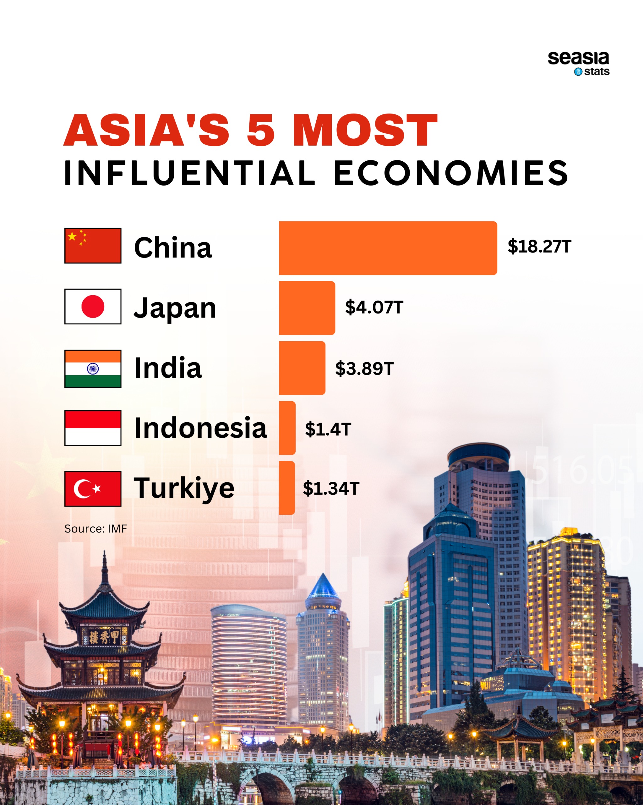 The data clearly illustrates the vast economic power of China while highlighting the growing influence of other Asian economies. As these nations continue to develop, they are likely to play an even greater role in shaping the global economic landscape in the years to come.