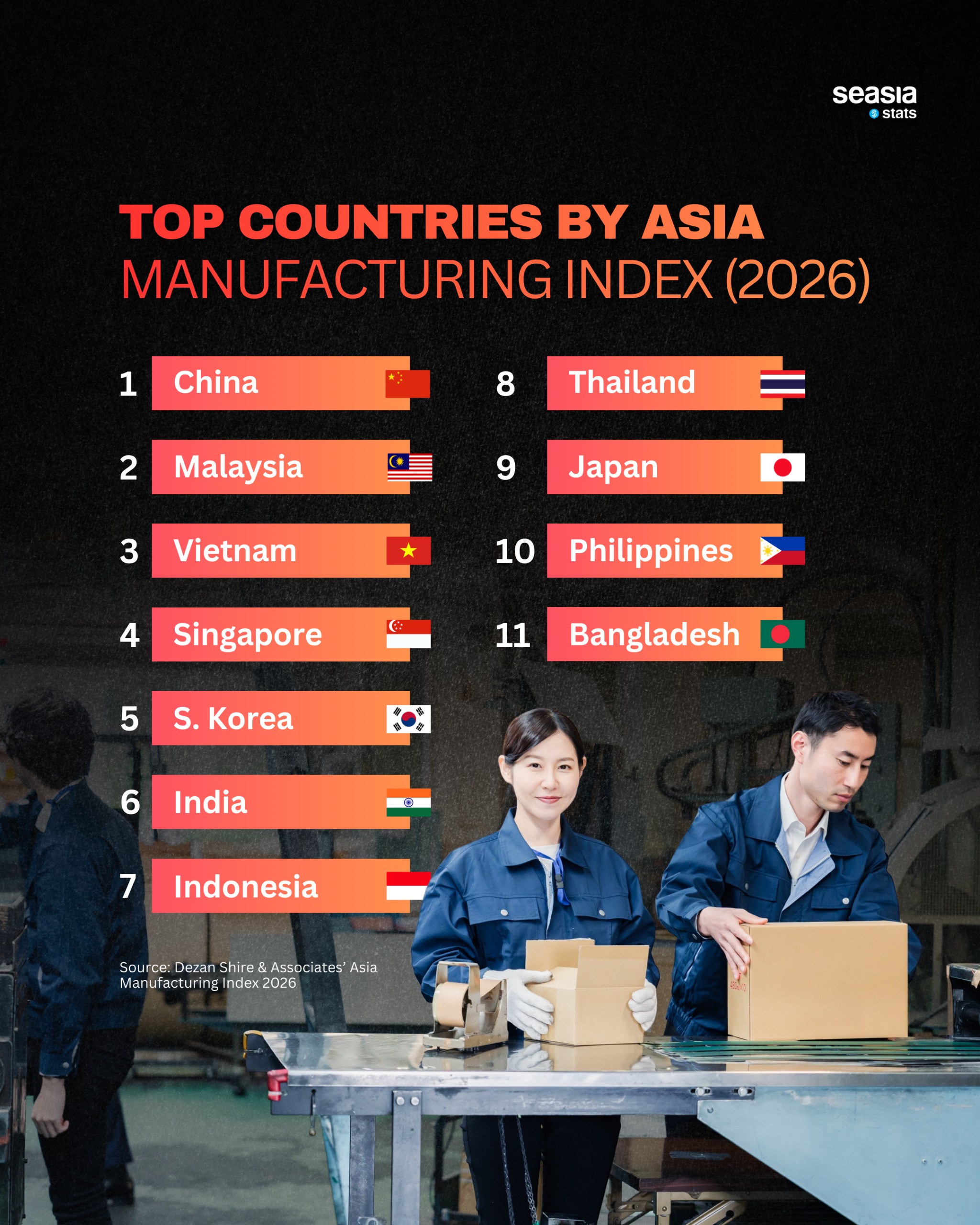 The most notable shift in the 2026 rankings is Malaysia’s rise to second place, overtaking Vietnam for the first time. This jump reflects Malaysia’s growing appeal as a balanced manufacturing destination—offering competitive labor costs, strong infrastructure, political stability, and deep integration into global trade networks.