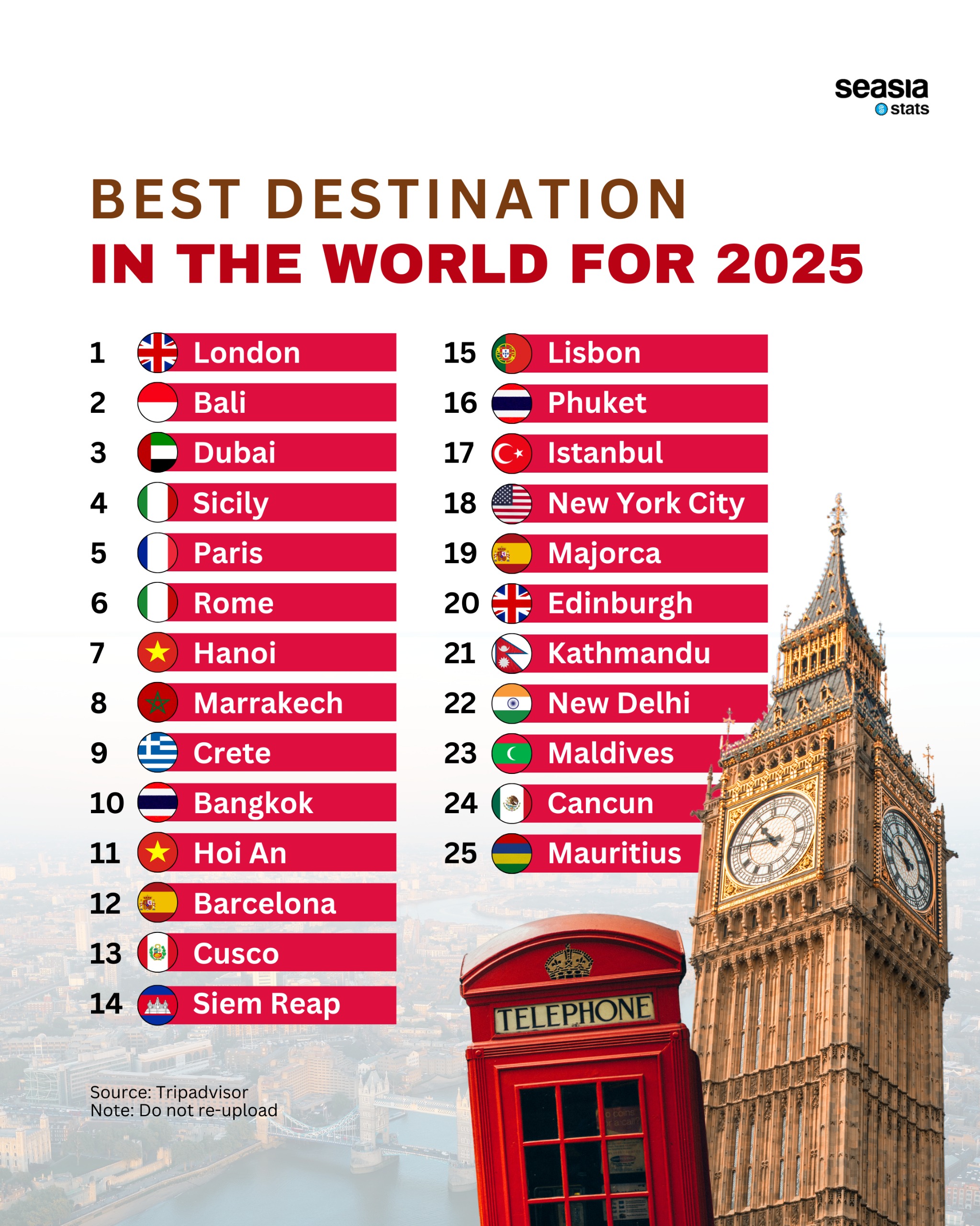 With Bali leading the region at second place, these rankings reaffirm Southeast Asia’s appeal as a top travel hub.