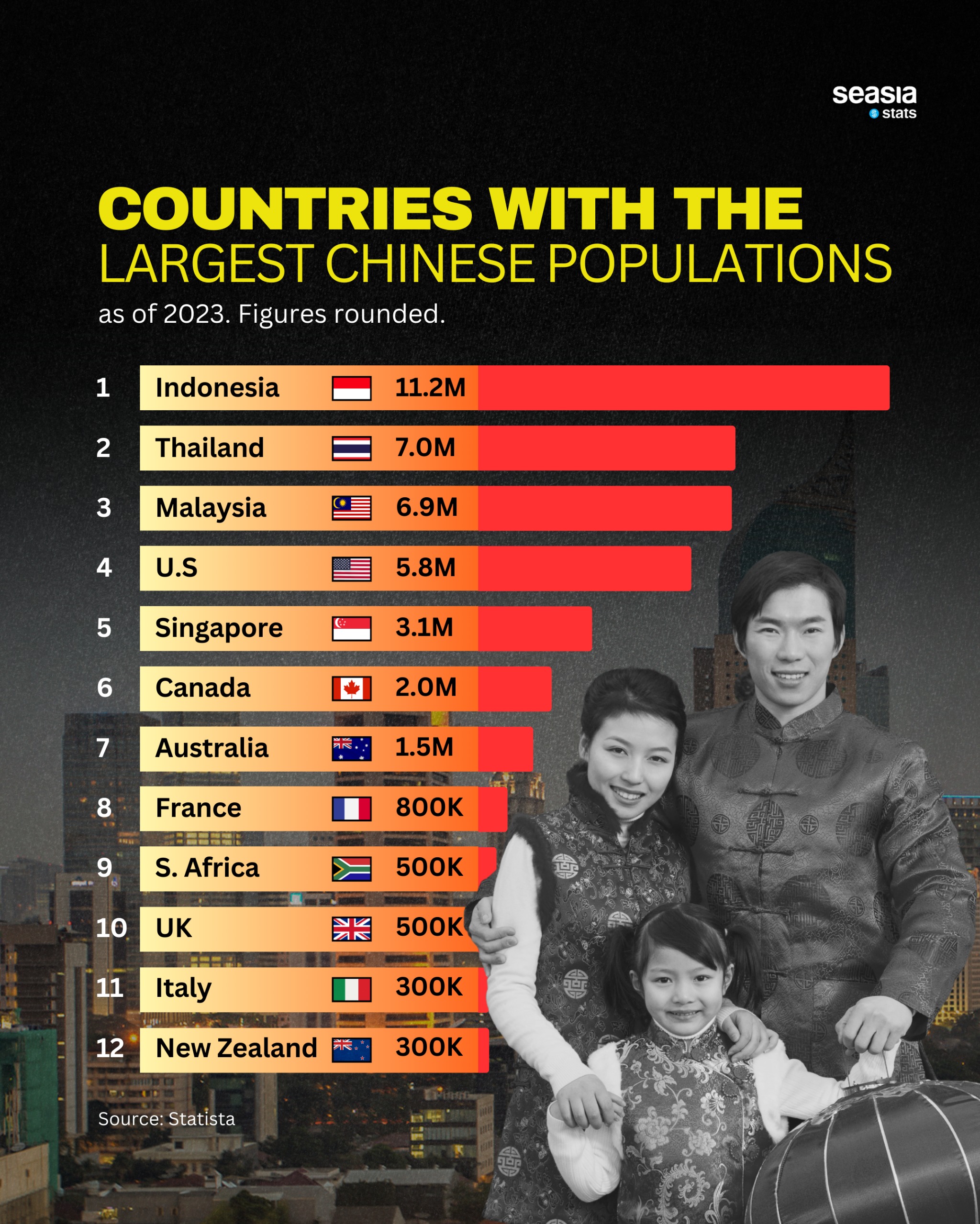 Singapore stands apart globally. With around 3.1 million ethnic Chinese residents, it is the only sovereign country outside China and Taiwan where ethnic Chinese form a clear majority, accounting for more than 75% of the population.