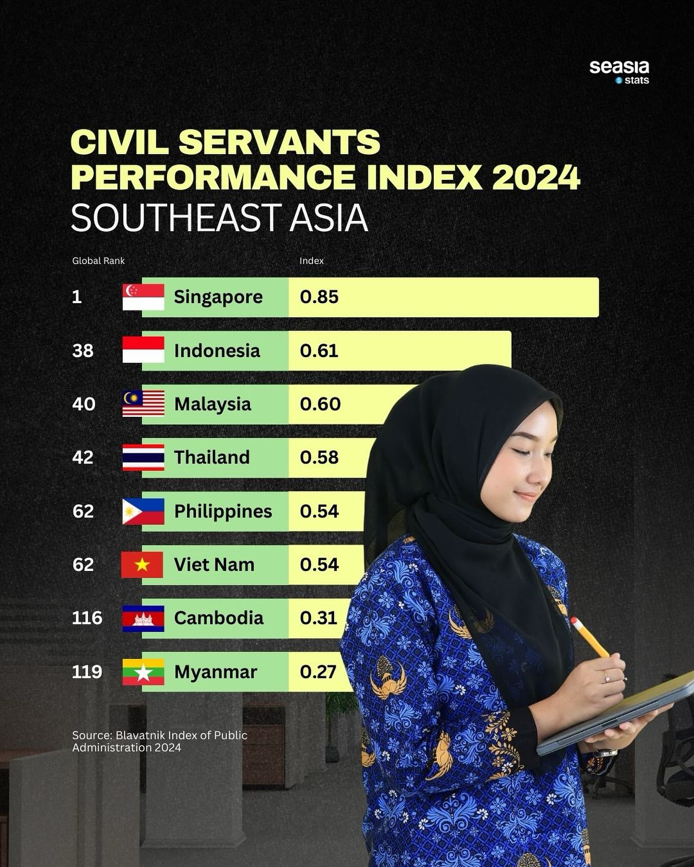 The Civil Servants Performance Index 2024 reveals significant disparities in public administration across Southeast Asia, with Singapore securing the top spot, both regionally and globally, with an impressive score of 0.85. This remarkable performance reflects Singapore’s long-standing reputation for efficiency, transparency, and effectiveness in governance. The city-state’s strong civil service is a cornerstone of its success, as it continues to set a global benchmark for good governance and administrative reforms.