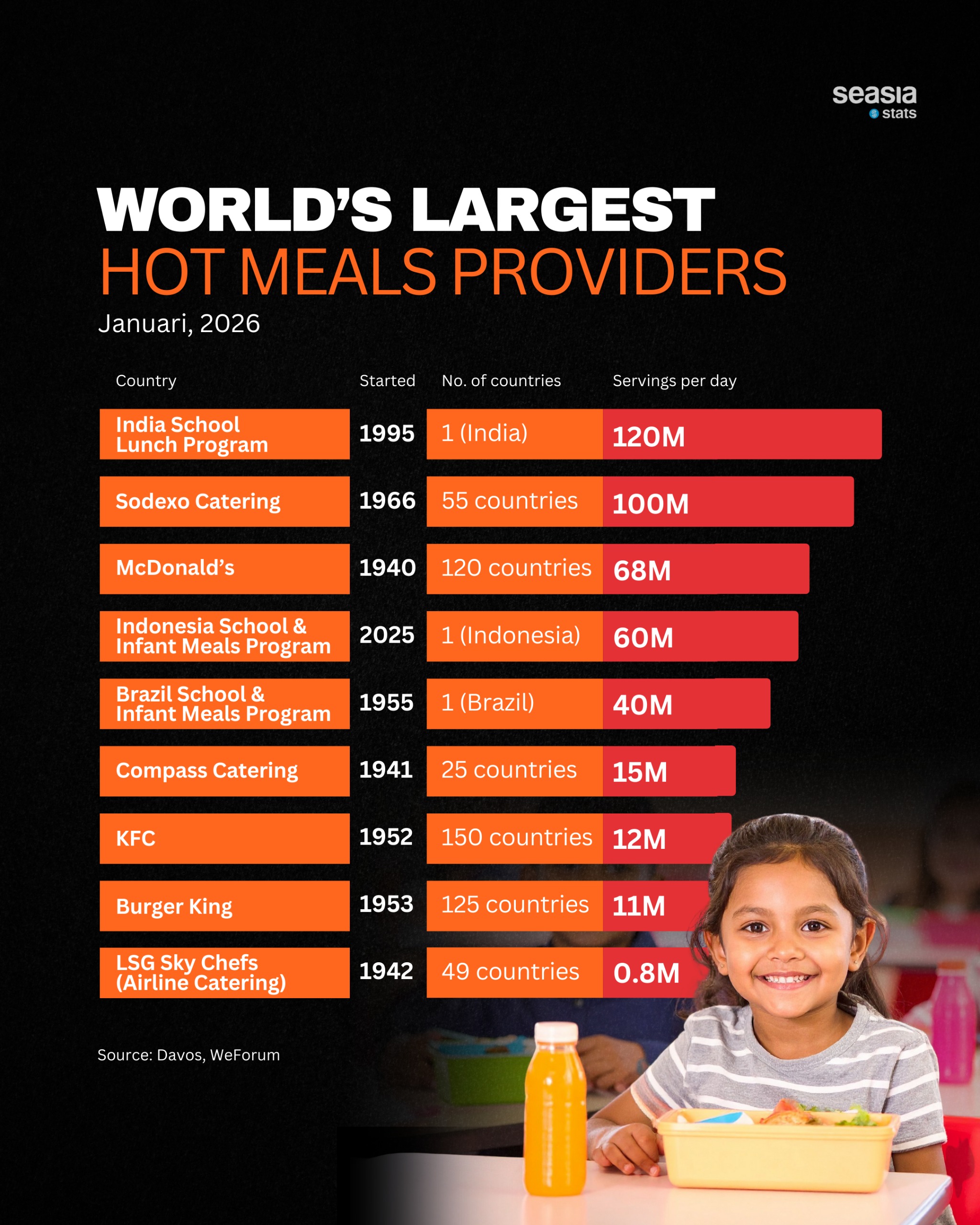 Together, these programs and companies reveal a powerful truth: the future of food isn’t only about fine dining or viral trends. It’s about scale, access, and impact. From India’s classrooms to Indonesia’s school kitchens, the world’s largest hot meal providers are quietly shaping global well-being—one plate at a time.