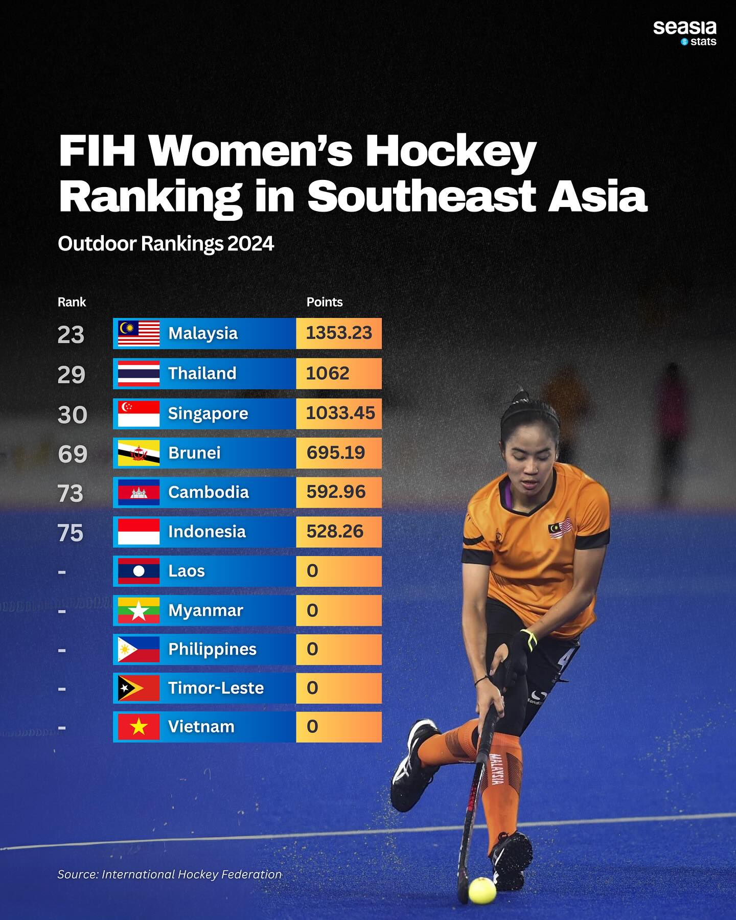 Malaysia dominates hockey rankings in Southeast Asia, for both men and women rankings!According to the International Hockey Federation website, the latest outdoor hockey rankings in 2024 place the Malaysian men’s hockey team at 13th globally, while their women’s team is ranked 23rd worldwide.The achievements of Malaysia’s men’s hockey team are even more impressive than those of their women’s team, as they have participated in the Hockey World Cup tournament.