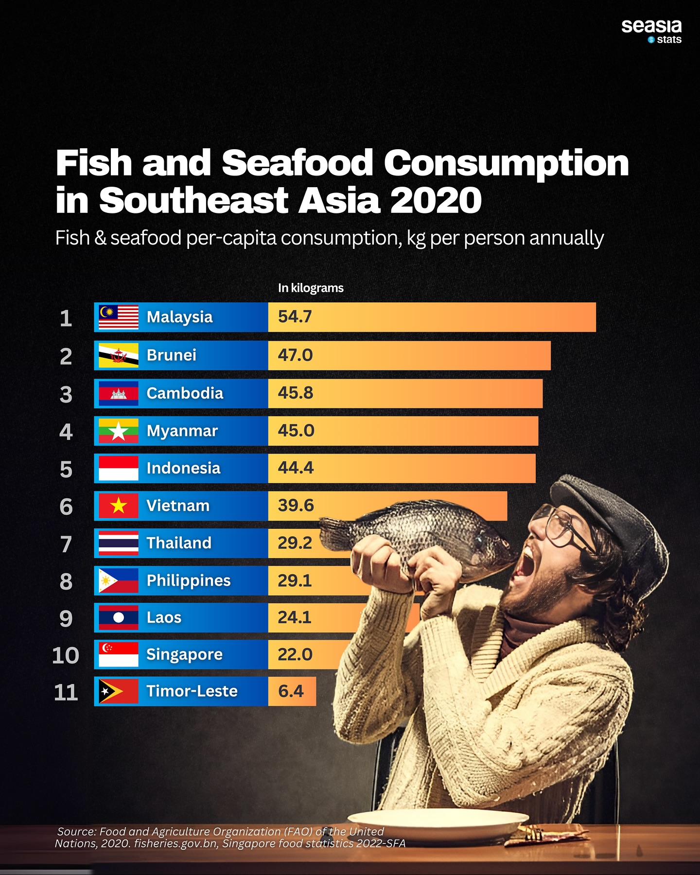 In 2020, Malaysia emerged as the undisputed leader in fish and seafood consumption across Southeast Asia, affirming its status as a nation with a deep-seated love for maritime delicacies. Based on meticulous data compiled by the Food and Agriculture Organization (FAO) of the United Nations, Malaysia claimed the top spot with an impressive per capita consumption of 54.7 kilograms of fish and seafood annually.