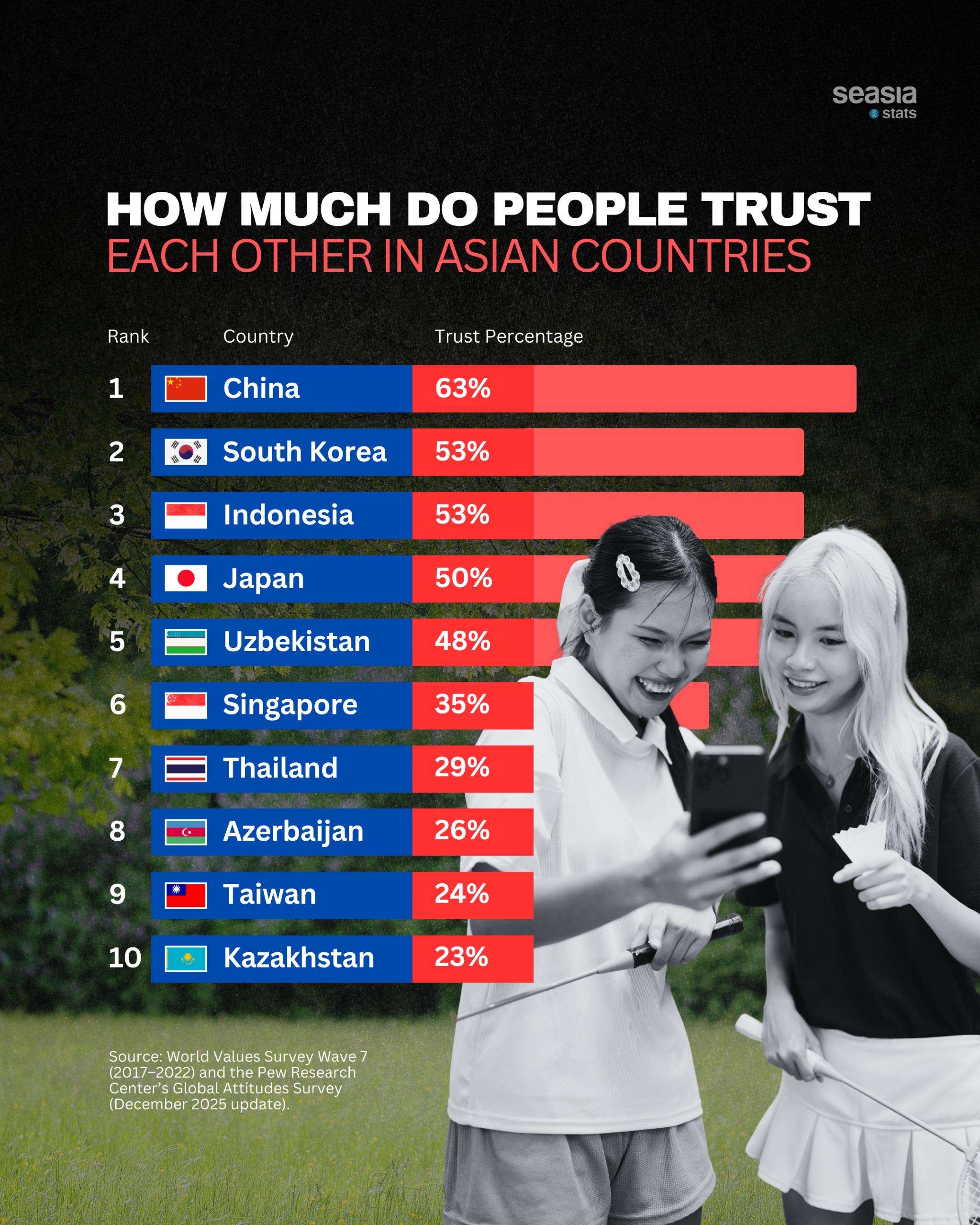 In every society, trust is the invisible thread that binds communities together. It shapes how people do business, form friendships, and cooperate with strangers. Across Asia, however, levels of interpersonal trust vary widely—reflecting deep cultural, economic, and social differences. Recent data compiled by Seasia Stats from the World Values Survey and Pew Research Center offers a revealing snapshot of how much people trust one another across the region.