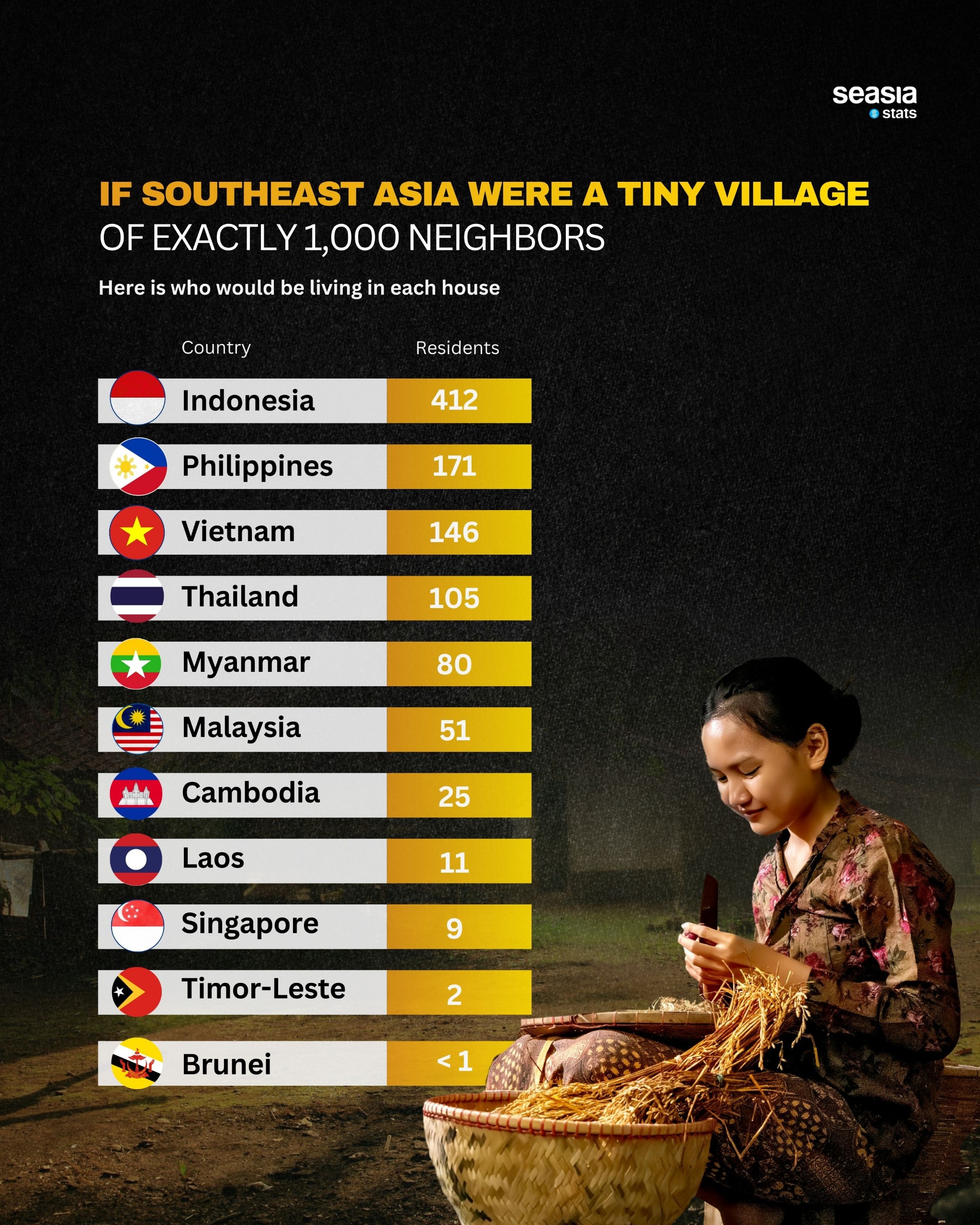 Southeast Asia is often spoken of as a single region, but in human terms, it is a neighborhood of striking contrasts. One way to understand that imbalance is to shrink the region down into a single imaginary village of exactly 1,000 people. Suddenly, the abstract becomes personal: you can picture who lives where, which homes are crowded, and which sit quietly at the end of the lane.