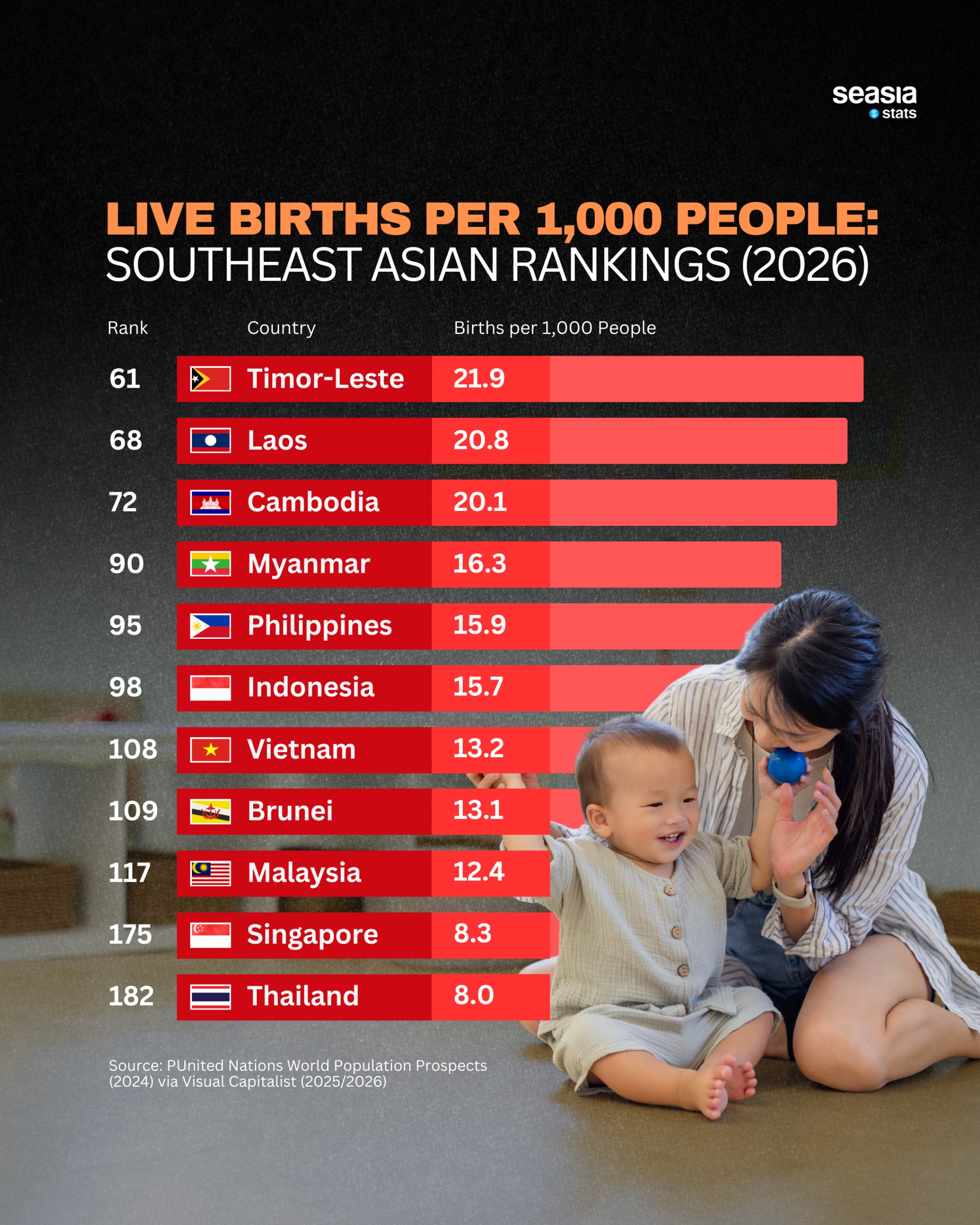 Southeast Asia’s demographic story in 2026 is one of striking contrasts. From fast-growing youthful societies to rapidly aging economies, the region’s birth rates reveal a complex tapestry shaped by culture, economics, and policy. The latest data from Seasia Stats and the United Nations World Population Prospects highlights just how wide the gap has become—offering a glimpse into the future of Southeast Asia’s workforce, cities, and social systems.
