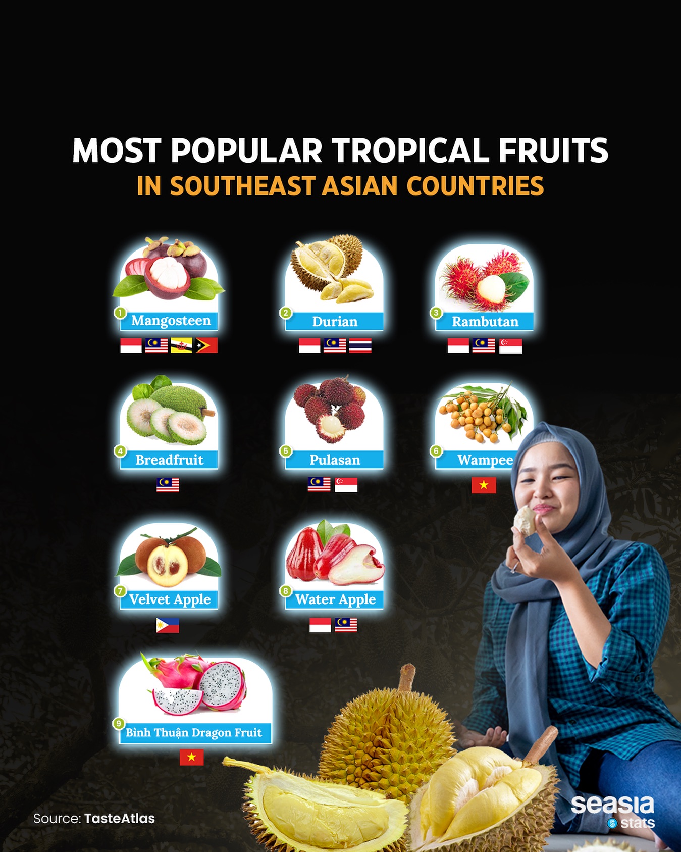 According to TasteAtlas, Mangosteen is the most popular tropical fruit in four countries: Indonesia, Malaysia, Brunei Darussalam, and Timor-Leste. What about you guys? Are these fruits popular among you?