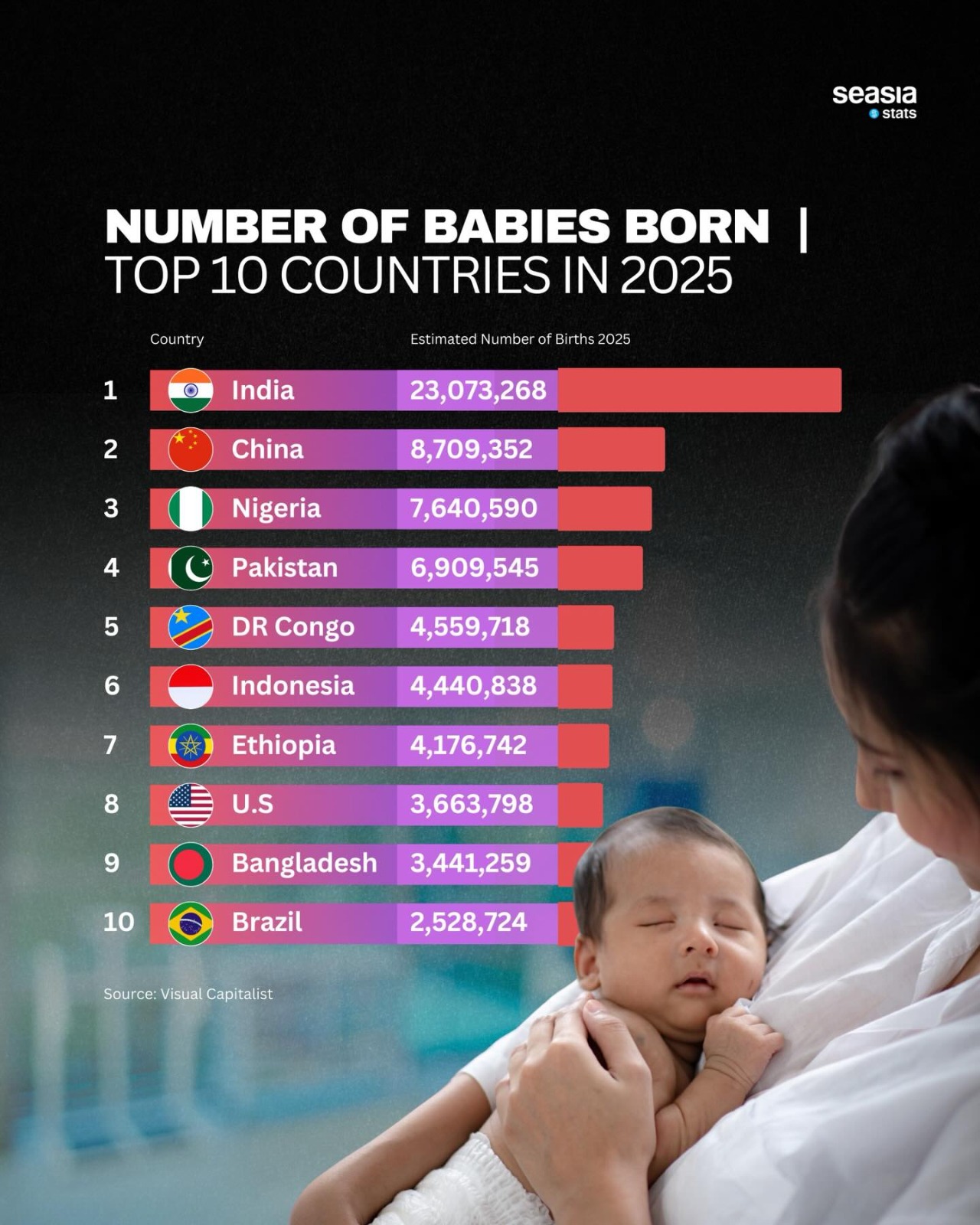 While Indonesia is the only Southeast Asian country in the global top ten, the region as a whole contributes significantly to global births. Countries such as the Philippines and Vietnam continue to record millions of births annually, supported by young populations and expanding urban economies. The Philippines, in particular, maintains one of the highest fertility rates in ASEAN, while Vietnam’s steady population growth is linked to improved healthcare and economic stability.
