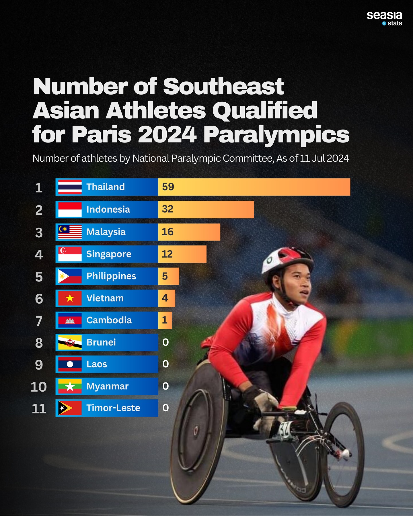 Following closely behind is Indonesia, with 26 athletes securing their spots for the Paralympic Games. Malaysia and Singapore have also secured respectable numbers, with 16 and 12 athletes respectively, demonstrating their dedication to para sports development and representation.