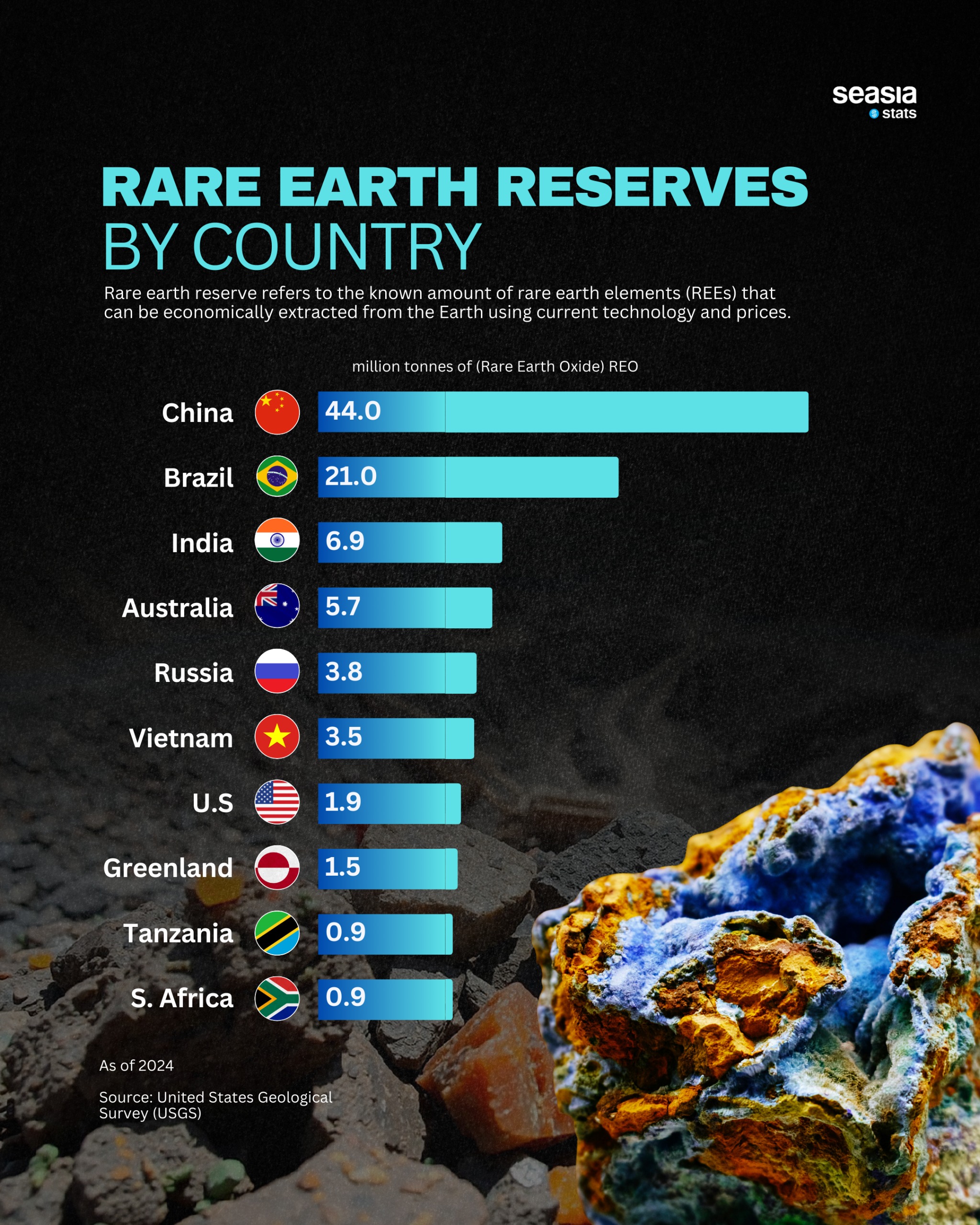 Southeast Asia is quietly becoming a crucial frontier in the rare earth landscape. Vietnam’s 3.5 million metric tons of reserves make it one of the region’s most important players, with growing interest from international investors seeking to diversify supply chains.