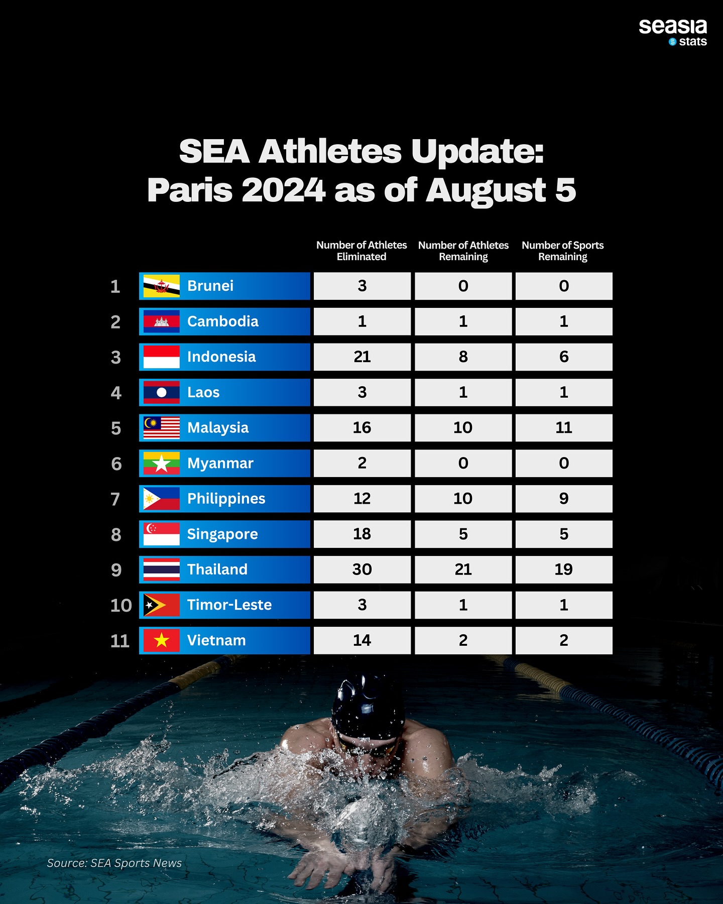 As the Paris 2024 Olympics progress, the performance of Southeast Asian athletes remains a focal point. Here is the latest update on the number of athletes who have been eliminated, the remaining competitors, and the sports in which they are still participating.