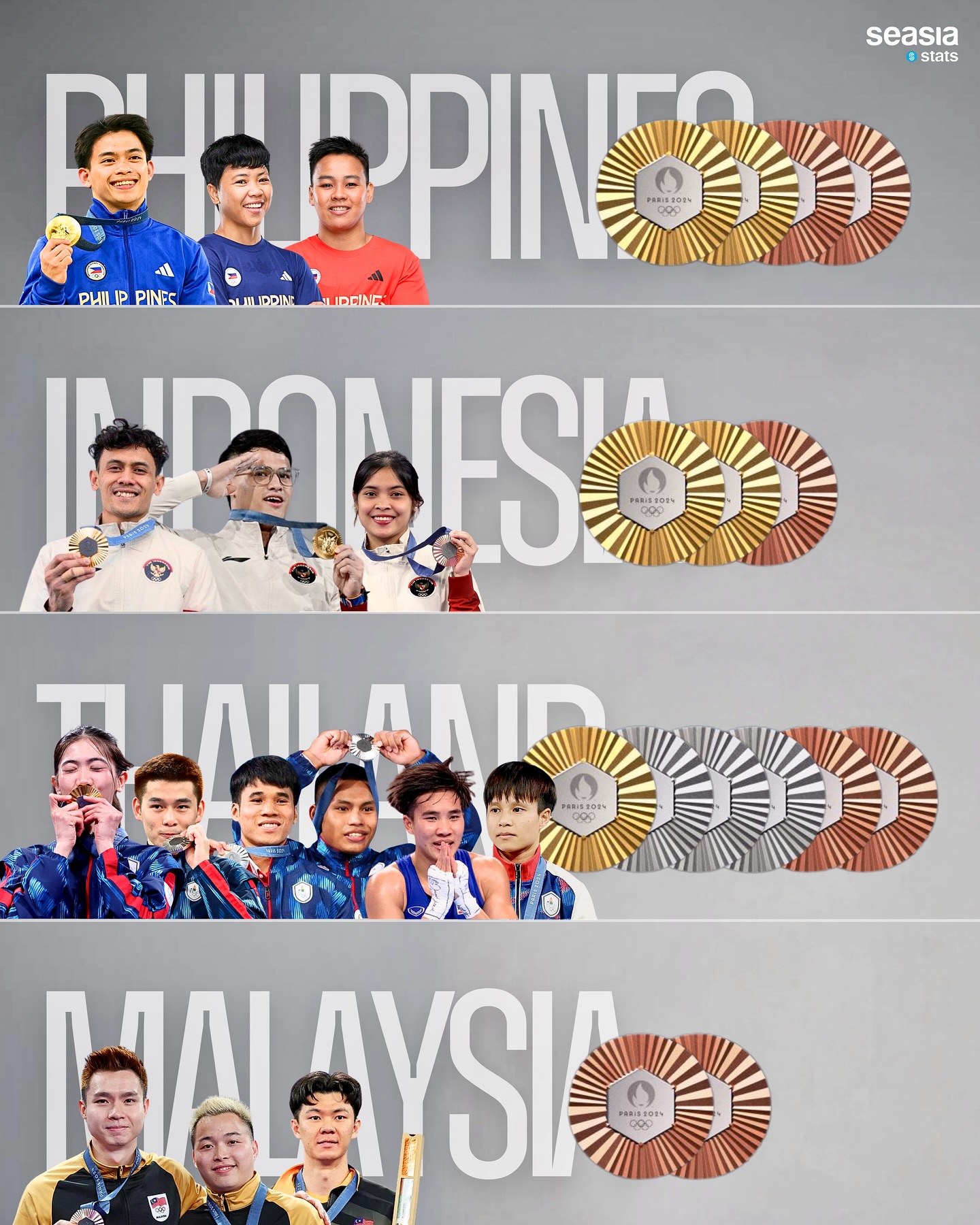 With just 2 days remaining in the Paris 2024 Olympics, Southeast Asia has secured a total of 15 medals. Here’s a breakdown of the achievements: