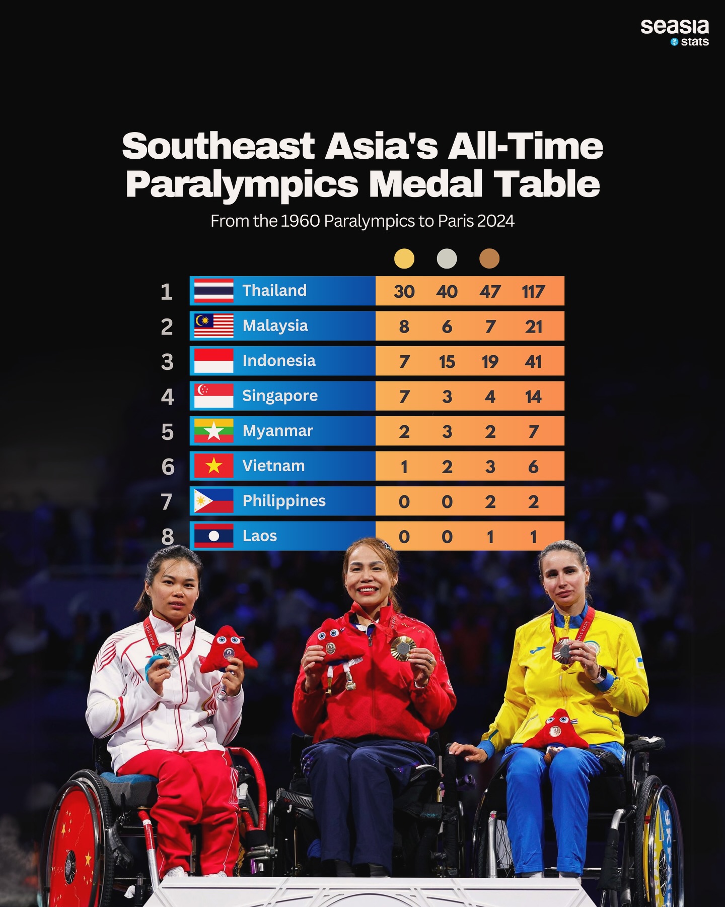Malaysia has surpassed Indonesia to become the second-highest medal earner in Southeast Asia. The country’s steady rise in Paralympic achievements reflects the growing investment in and development of adaptive sports. Malaysia’s total Paralympic medal haul now stands at: