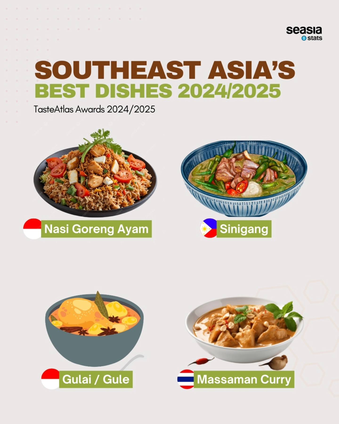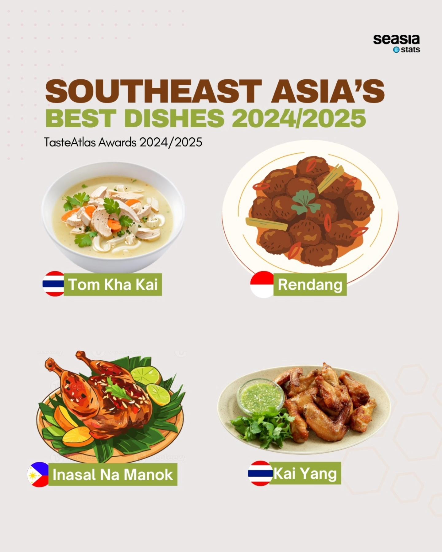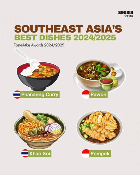 The TasteAtlas Awards for 2024/2025 reaffirm Southeast Asia's culinary prominence on the global stage. From the rich, spicy curries of Thailand and Indonesia to the tangy soups of the Philippines, the region’s diverse offerings showcase its vibrant food culture and deep-rooted traditions. These dishes not only provide a taste of Southeast Asia’s rich heritage but also solidify its status as a food lover’s paradise.