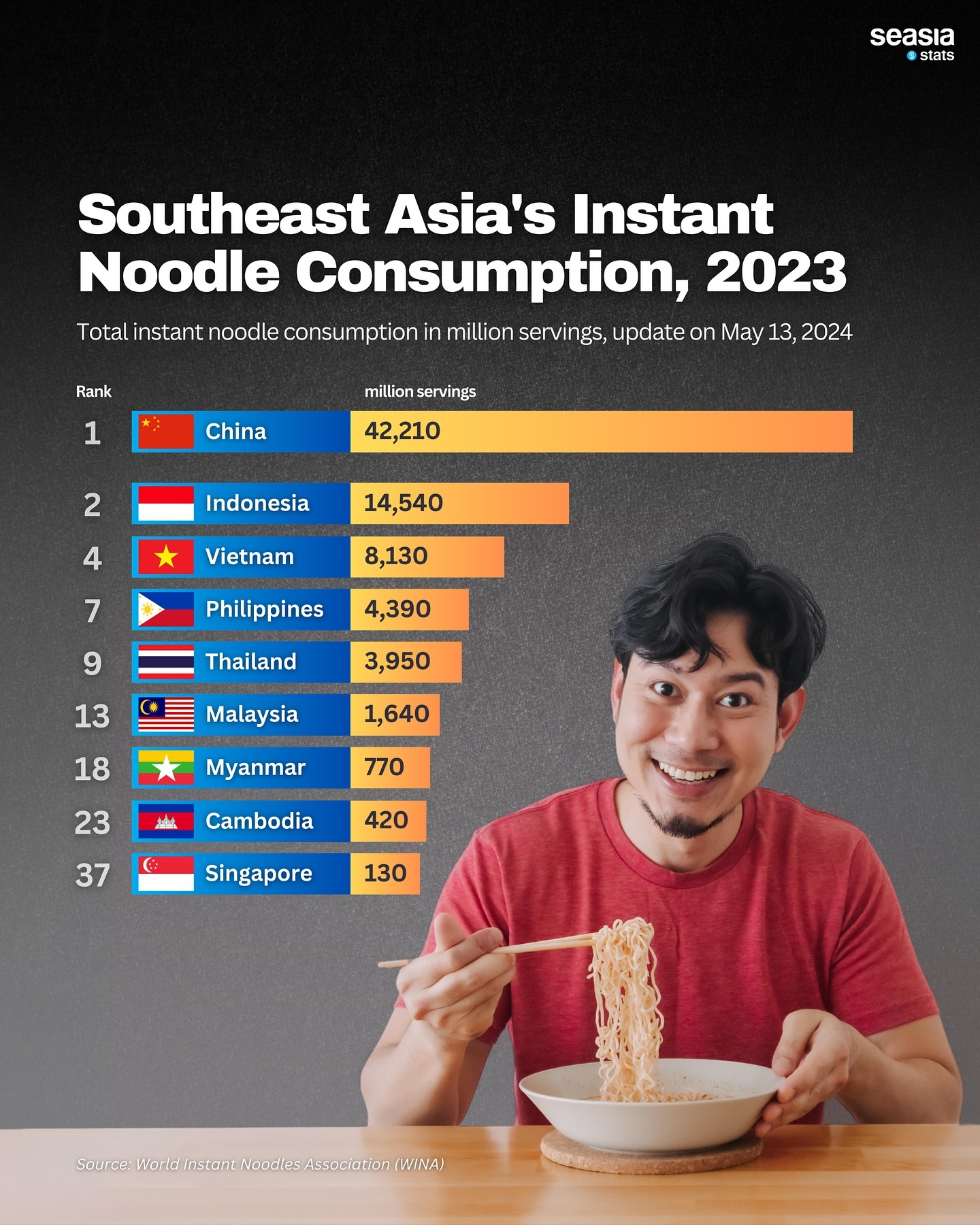 In 2023, Indonesia claimed the title for the highest instant noodle consumption in Southeast Asia and ranked second globally!
