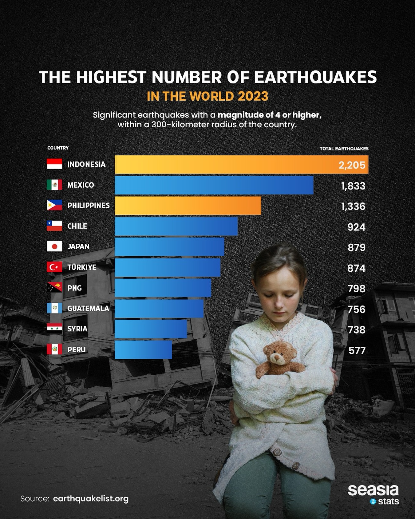 Indonesia become the country with the highest number of earthquakes globally in 2023!