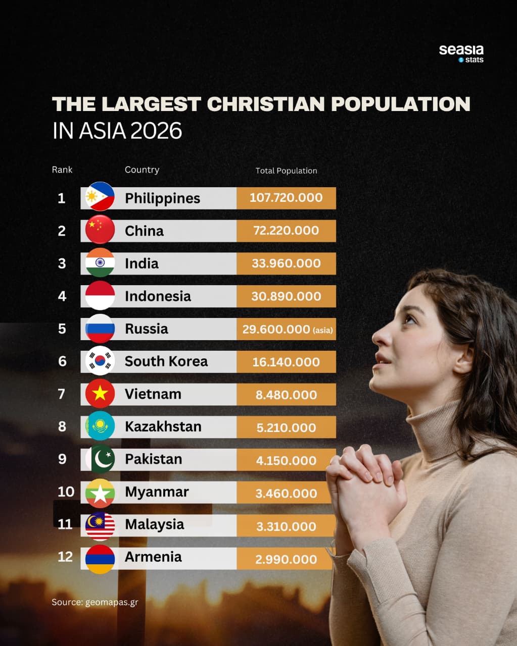 Christianity in Asia is often misunderstood as a small or peripheral faith. In reality, it is one of the continent’s most deeply rooted and demographically significant religious traditions—woven into colonial history, missionary networks, indigenous communities, migration, and modern nation-building. The latest ranking shared by Seasia Stats highlights just how substantial that presence remains in 2026, with the Philippines standing firmly at the top and Southeast Asia playing a far larger role in Asia’s Christian story than many outsiders realize.