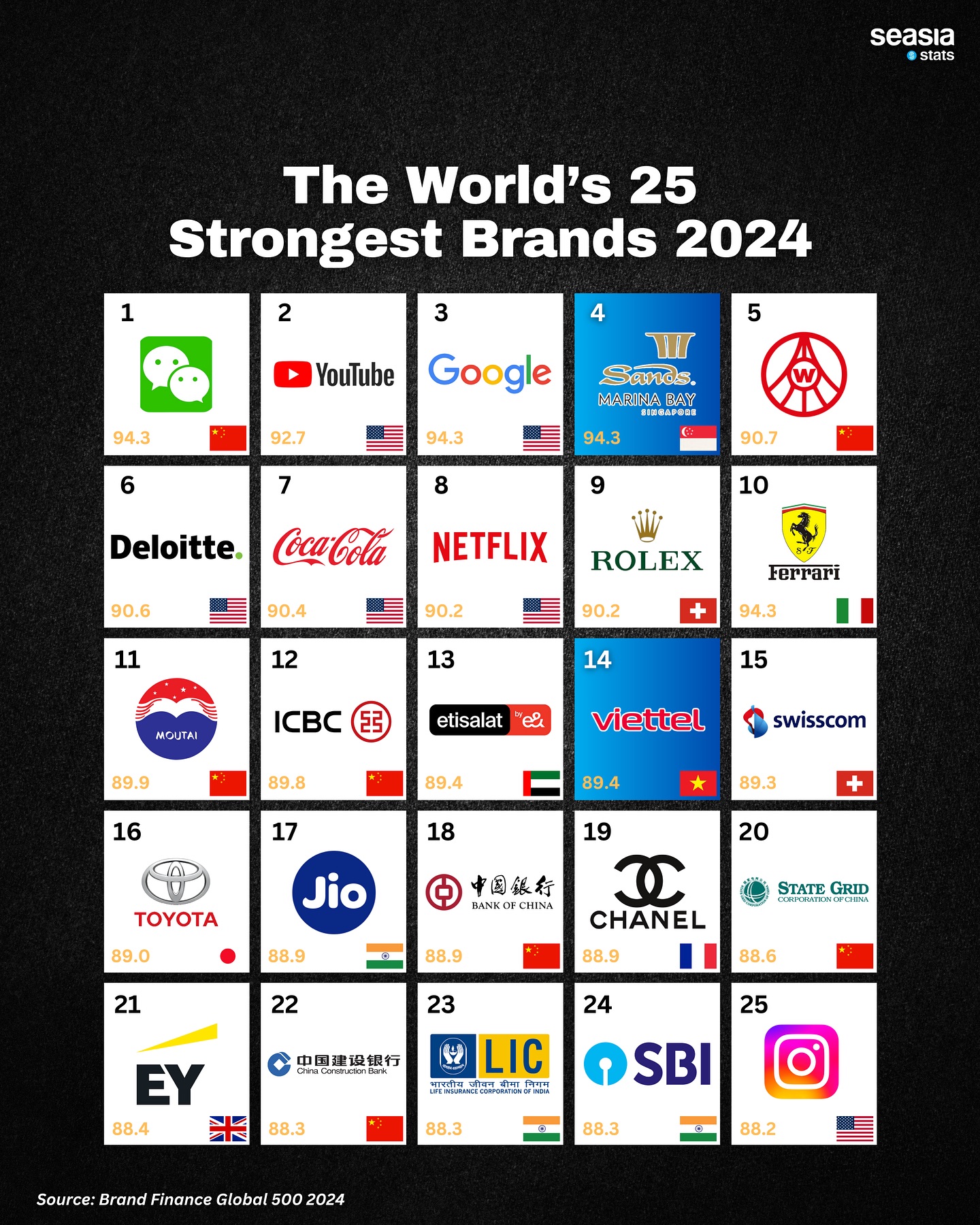 The inclusion of Marina Bay Sands and Viettel underscores the growing influence and competitiveness of Southeast Asian brands on the global stage. Their success reflects not only their exceptional performance but also their strategic investments in building brand equity and fostering customer loyalty.