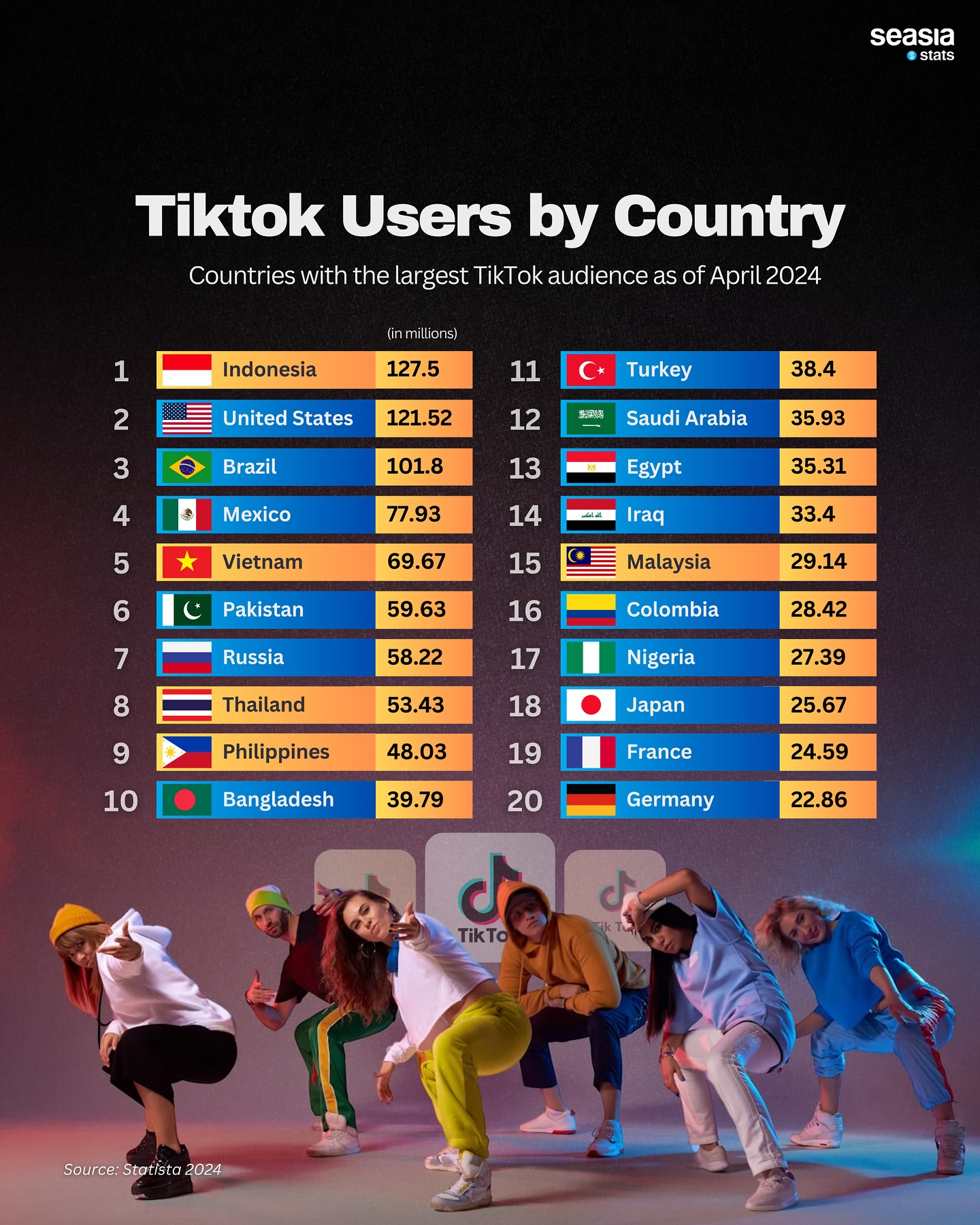 According to data from Statista published in April 2024, Indonesia has emerged as the global leader in TikTok viewership, underscoring the platform's immense popularity in the country. Here’s a breakdown of the top-ranking Southeast Asian countries and their positions worldwide: