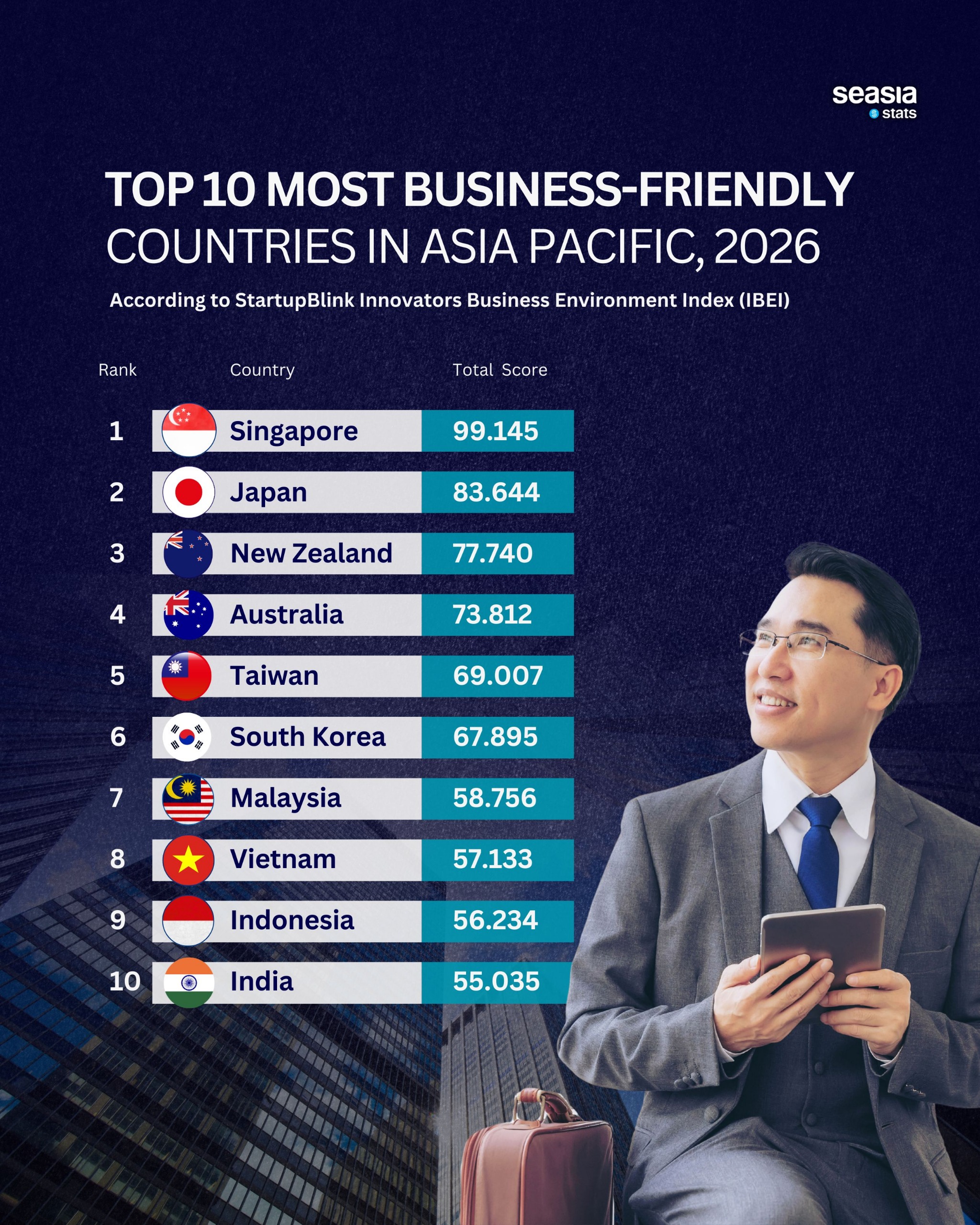 The Asia-Pacific region continues to emerge as one of the most dynamic economic centers in the world. From advanced technology hubs to rapidly growing emerging markets, the region offers a wide range of opportunities for entrepreneurs, startups, and multinational companies. According to the StartupBlink Innovators Business Environment Index (IBEI) 2026, several countries stand out as the most business-friendly destinations in the Asia-Pacific, offering supportive regulations, strong infrastructure, and thriving innovation ecosystems.