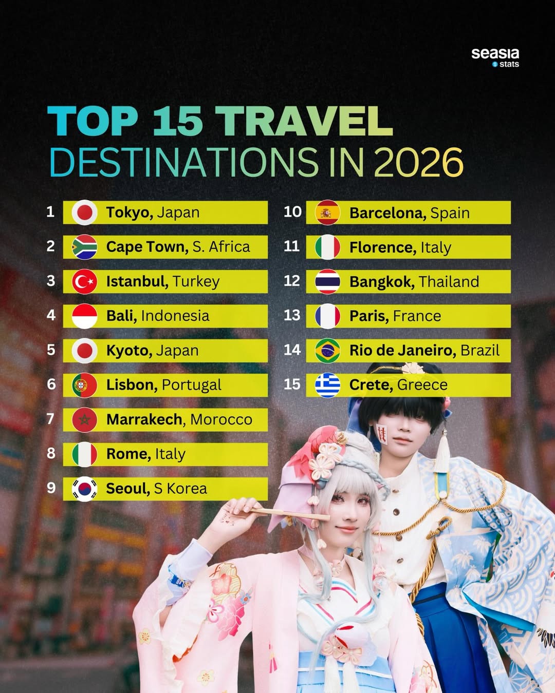 Rounding out the top three is Istanbul, Turkey, a city that literally bridges continents. Istanbul’s unique position between Europe and Asia, paired with its centuries-old architecture, bustling bazaars, and dynamic food scene, makes it an enduring favorite for global travelers. Together, Tokyo, Cape Town, and Istanbul highlight how modern travelers in 2026 are drawn to destinations that offer cultural depth, visual beauty, and unforgettable experiences.