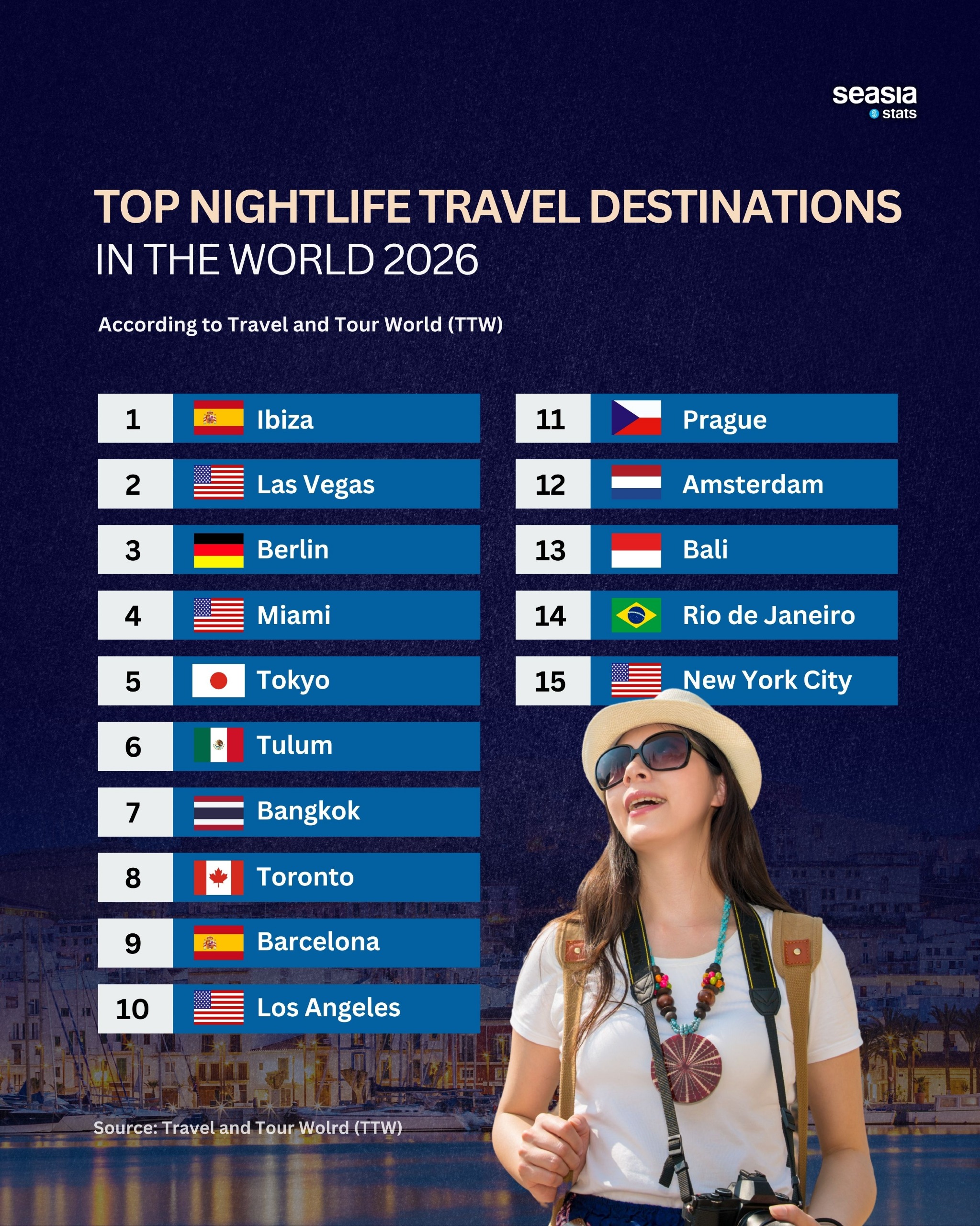 According to Travel and Tour World (TTW), the Spanish island of Ibiza continues to reign as the world’s ultimate nightlife capital in 2026. Long synonymous with electronic dance music and legendary DJs, Ibiza has perfected the formula of escapism, blending Mediterranean beauty with all-night revelry. Close behind is Las Vegas, where nightlife is amplified by spectacle, luxury, and an around-the-clock entertainment culture that rarely pauses.