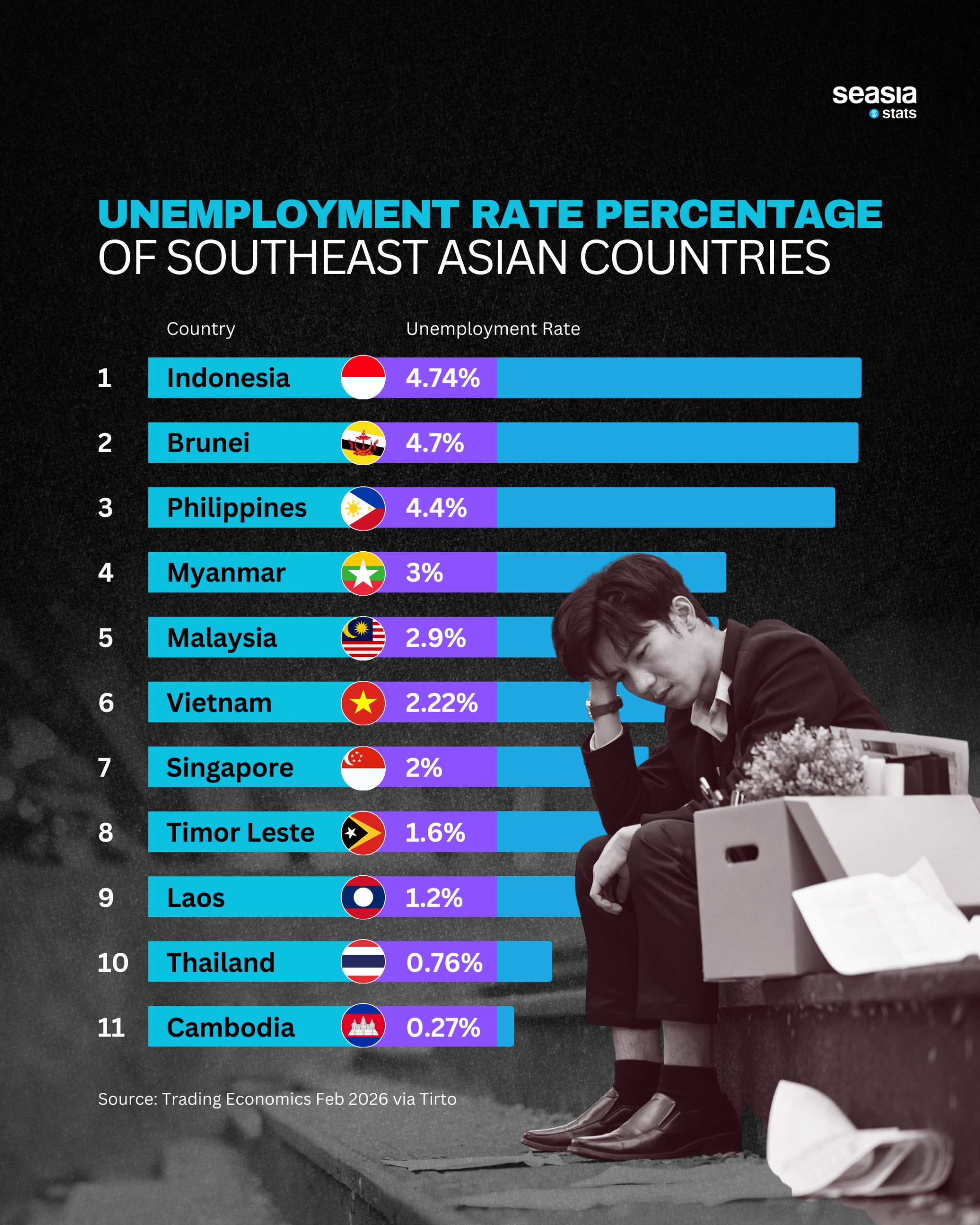 These three countries are the only ones in Southeast Asia with unemployment rates above 4%, marking them as key pressure points in the regional labor market.