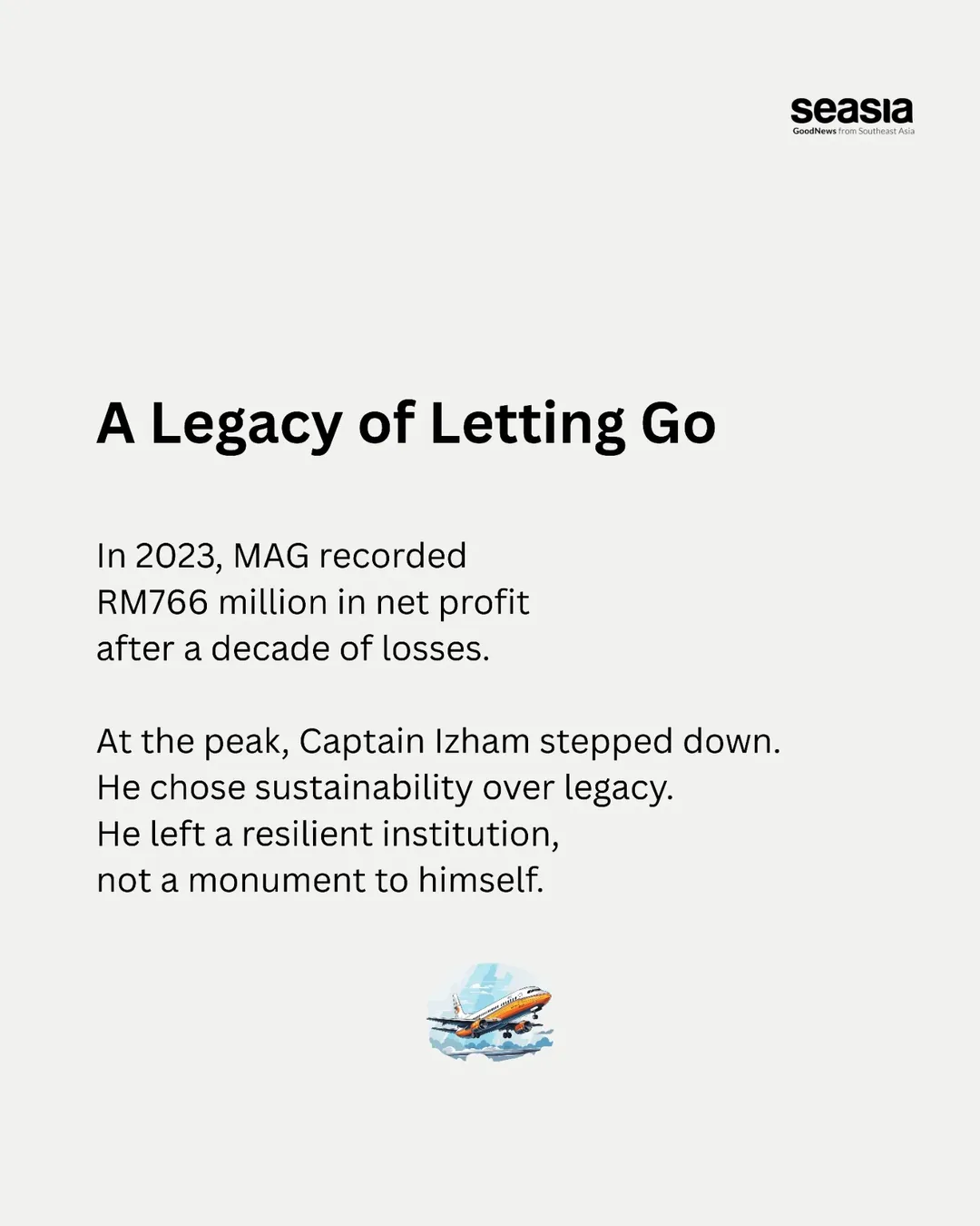 Izham stepped down after MAG posted a RM766 million net profit in 2023—its first major profit after a decade of losses—leaving behind not just a stronger balance sheet, but a leadership legacy centered on resilience, cultural renewal, and sustainable transformation.
