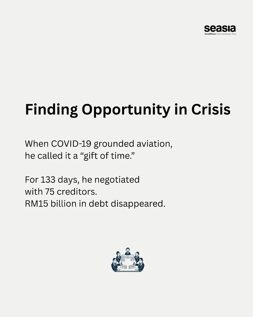 During the COVID-19 crisis, Izham reframed the global shutdown as a “gift of time,” personally negotiating with 75 creditors over 133 days and successfully eliminating RM15 billion in debt, a restructuring that reset the airline’s future.