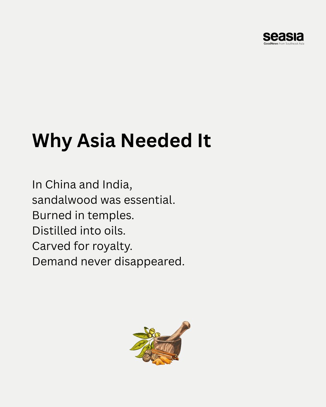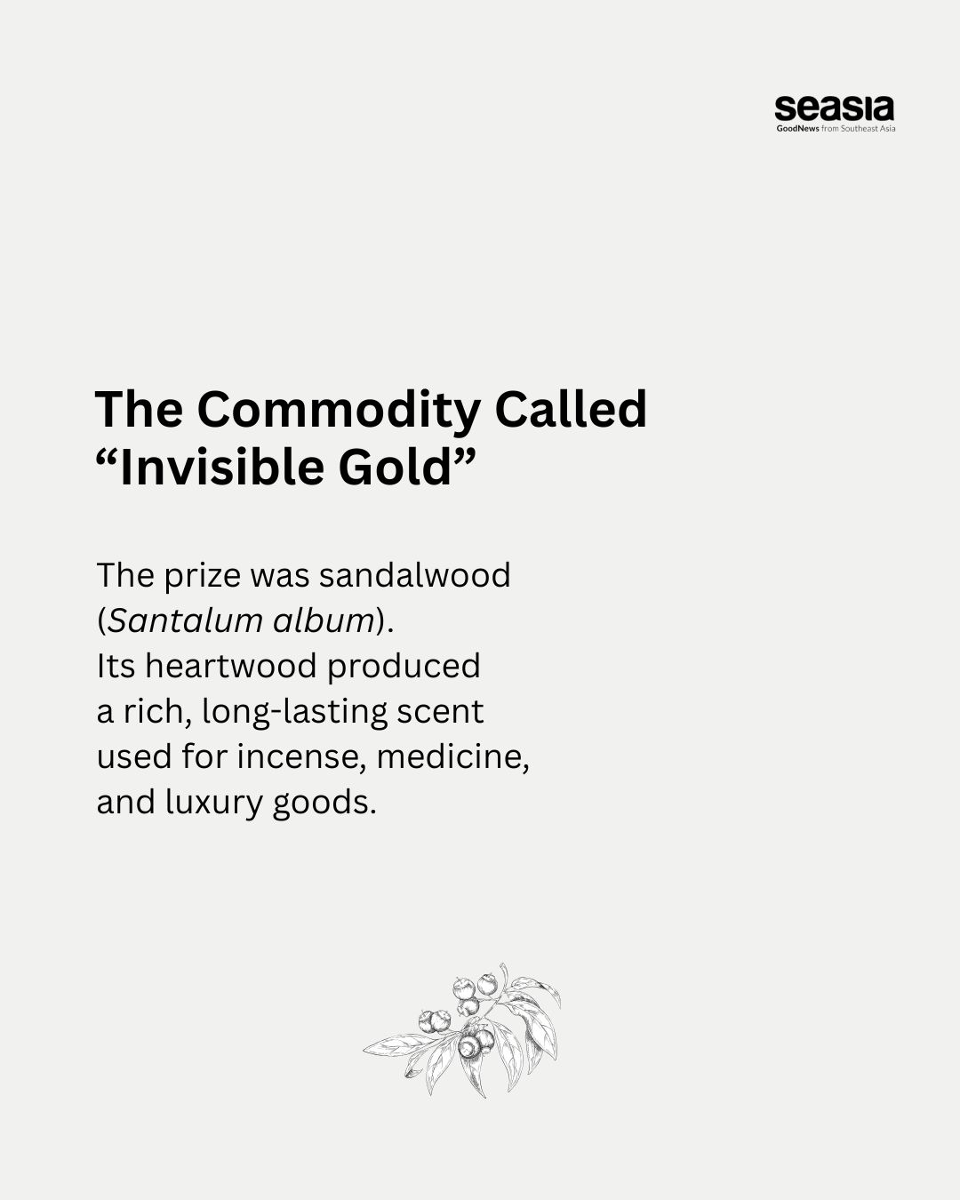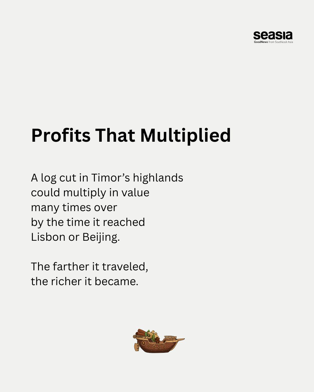 Timorese sandalwood was prized across China and India for incense, medicine, and luxury goods. Asian merchants had traded it for centuries. When the Portuguese arrived in 1515, they connected the island directly to European markets, cutting out middle traders and driving profits sharply higher. The wood became known as “invisible gold.”